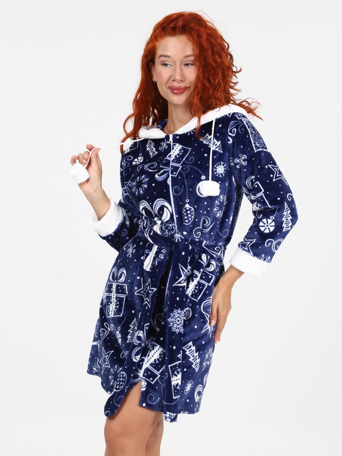 Уютный женский халат «Снежок» из мягкого и пушистого материала велсофт подарит Вам незабываемый комфорт. Халат с капюшоном, на поясе, длиной до уровня колен, с боковыми карманами, застёжка-молния. Приятная ткань дарит настоящий комфорт, настраивая Вас на позитивные мысли и полное расслабление. А приятная цветовая гамма порадует глаз.