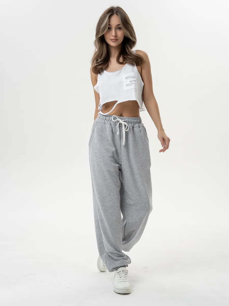 Комфортные и универсальные женские джоггеры созданы для свободы движений и простых расслабленных сетов. Для пошива мы использовали трикотаж высокого качества футер 2-х нитка. Материал с приятной на ощупь и гладкой фактурой, отличается особой прочностью, не линяет и не теряет форму со временем. Модель с высоким содержанием хлопка хорошо пропускает воздух и обеспечивает хорошую терморегуляцию. Брюки-джоггеры имеют максимально комфортный крой оверсайз, мягкую резинку на талии и по низу и два боковых кармана. С помощью декоративного шнура можно отрегулировать посадку по фигуре, затянув или расслабив эластичный пояс. Свободные трикотажные брюки в стиле «street casual» не стесняют движений. Их легко сочетать и удобно носить в готовом образе изделиями в тон из нашей коллекции - они гармонично сочетаются между собой и отвечают за удобство в повседневной носке. Брюки с высокой посадкой идеально впишутся в домашний образ и подойдут для неспешных прогулок или занятий спортом. Рост модели на фотографии 170 см. размер одежды 42 Длина брюк по боковому шву. 44 размер 107 см. 46 размер 107 см. 48 размер 107,5 см. 50 размер 107,5 см. 52 размер 108 см. 54 размер 109 см.