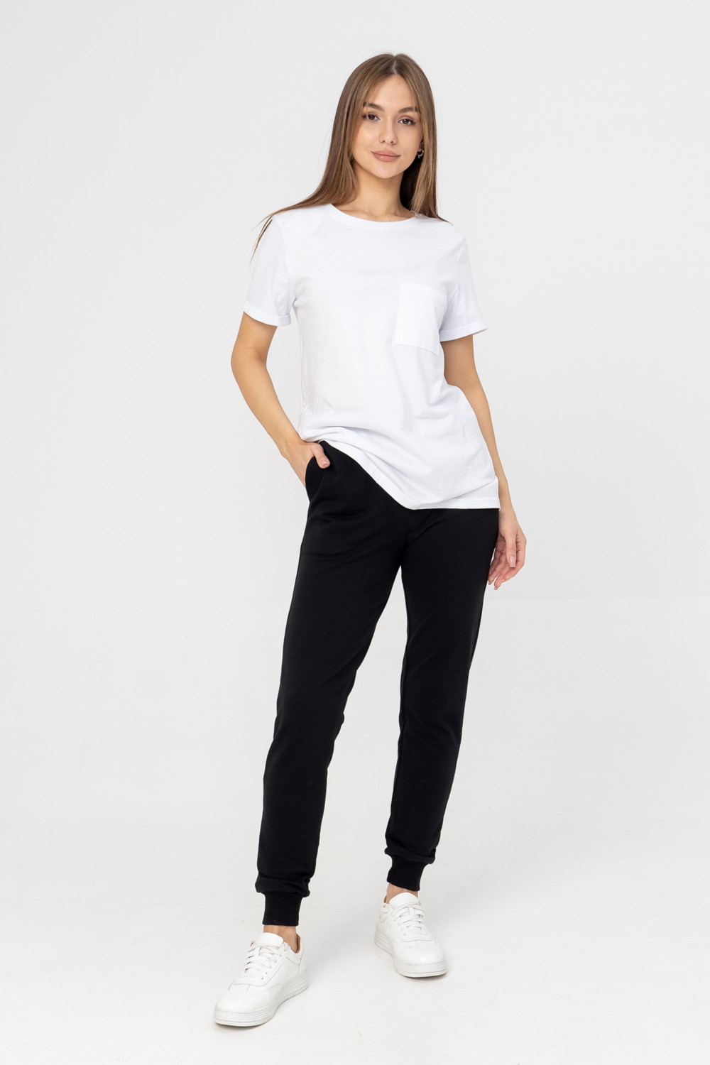 Стильные брюки отличаются легкостью и комфортным прилеганием к телу. Мягкая резинка на талии обеспечивает идеальную посадку. Брюки, зауженные к низу на высокой манжете, с карманами в боковом шве выполнены из хлопкового футера-петли, что придает ему стильный образ, а заодно выгодно подчеркивает фигуру. В комплекте с нашими свитшотом или худи из этой серии, футболкой или топом получается прекрасный костюм, который подходит как для дома, так и для прогулок и путешествий. Получится образ в стиле «спорт шик». Обращаем внимание, что цвет изделия может немного отличаться от оттенка, представленного на фотографиях. Рост модели на фотографии 176 см. размер одежды 44 Длина брюк по боковому шву 42 размер 99 см. 44 размер 99.5 см. 46 размер 100.5 см. 48 размер 101 см. 50 размер 102 см. 52 размер 102.5 см. 54 размер 103.5 см.
