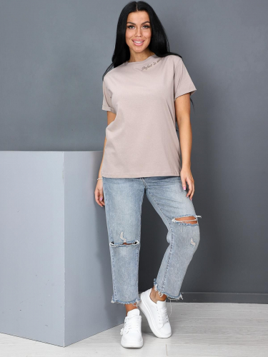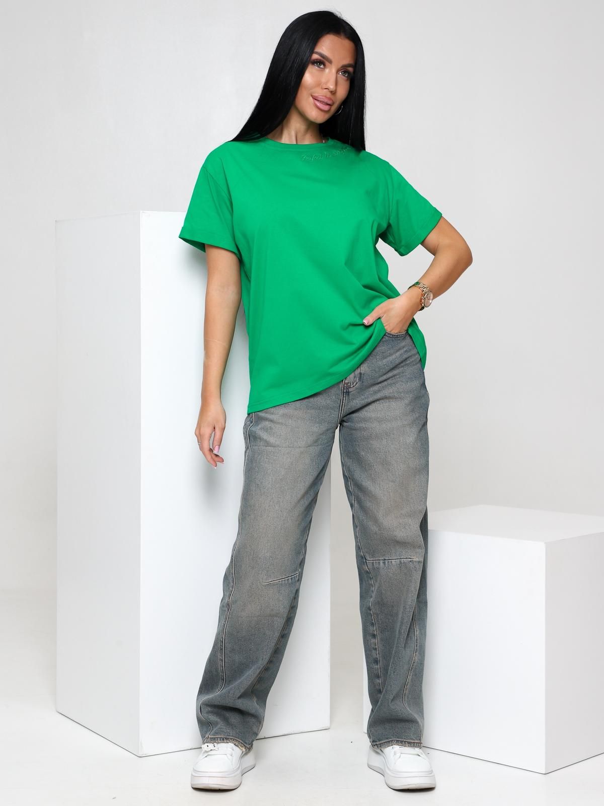 Футболка выполнена из хлопка, обтачка горловины из основной ткани, рукава с манжетом, около горловины выполнена вышивка.