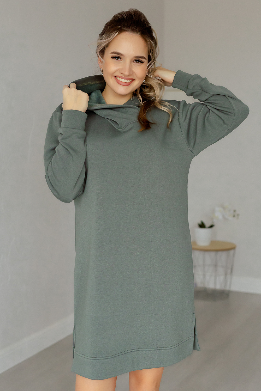 Платье-толстовка свободного силуэта со спущенным плечом и объемным капюшоном в городском стиле. Женское теплое спортивное платье на каждый день, выполнено из трикотажного полотна с мягким внутренним слоем. По бокам платья эффектные разрезы, которые подчеркнут Вашу женственность. Платье изготовлено из теплой и приятной к телу ткани, позволит сохранить тепло в холодные дни. Удобный свободный крой оверсайз подарит вам свободу движений и комфорт. Платье теплое женское повседневное подходит для дам с пышными формами, для беременных женщин, для высоких и низких девушек. Идеальный вариант для отдыха и работы. Платье представлено большим размерным рядом. Порадуйте покупкой себя и своих близких.
