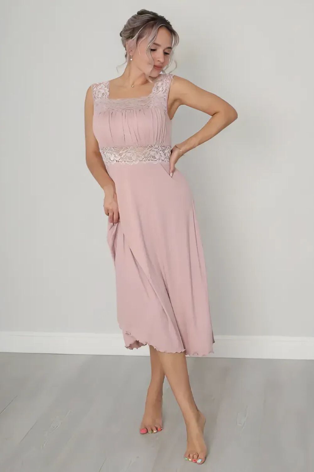 Ночная сорочка длинная прилегающего силуэта, расклешенная к низу от груди модная и стильная модель, выполненная из мягкой ткани и украшенная эластичным кружевом. Двойная кокетка с верхней задрапированной частью, удачно поддерживает грудь, создавая при этом приятное и комфортное ощущение. Верхние и нижние срезы кокеток и широкие бретели, выполненные из эластичного кружева, обеспечивают отличную посадку на плечах, не сковывают движения и мягко обхватывают тело. Ночнушка изготовлена из вискозной ткани, она мягкая и нежная для осязания, имеет малый вес, хорошо регулирует теплообмен, пропускает воздух, не электризуется, не вызывает раздражение кожи, удерживает цвет. Эта модель рубашки для сна больших размеров прилегающего силуэта является прекрасным выбором для женщин, которые хотят выглядеть красиво и чувствовать себя уютно и расслабленно дома. Она подходит для тех, кто ищет удобную и красивую ночную одежду. Данная модель подходит для девушек и женщин всех возрастов. Рубашка, благодарю крою подойдет для беременных и кормящих мам. Благодаря своей универсальности может использоваться как уютное домашнее платье. Стильное, современное и комфортное платье для дома, которое необходимо в любой сезон. Широкий размерный ряд: от маленьких до больших, сорочка сядет на любую фигуру. Подойдет на любой рост: для высоких, для невысоких и дам среднего роста. Подходящий вариант для каждого возраста. Приобретайте нашу одежду для дома и почувствуйте себя Королевой. Эффектная кружевная ночнушка станет отличным подарком. Ночнушка подойдет для походов в роддом. Сделайте выбор в пользу качественной и стильной одежды и наслаждайтесь приятным сном и отдыхом.