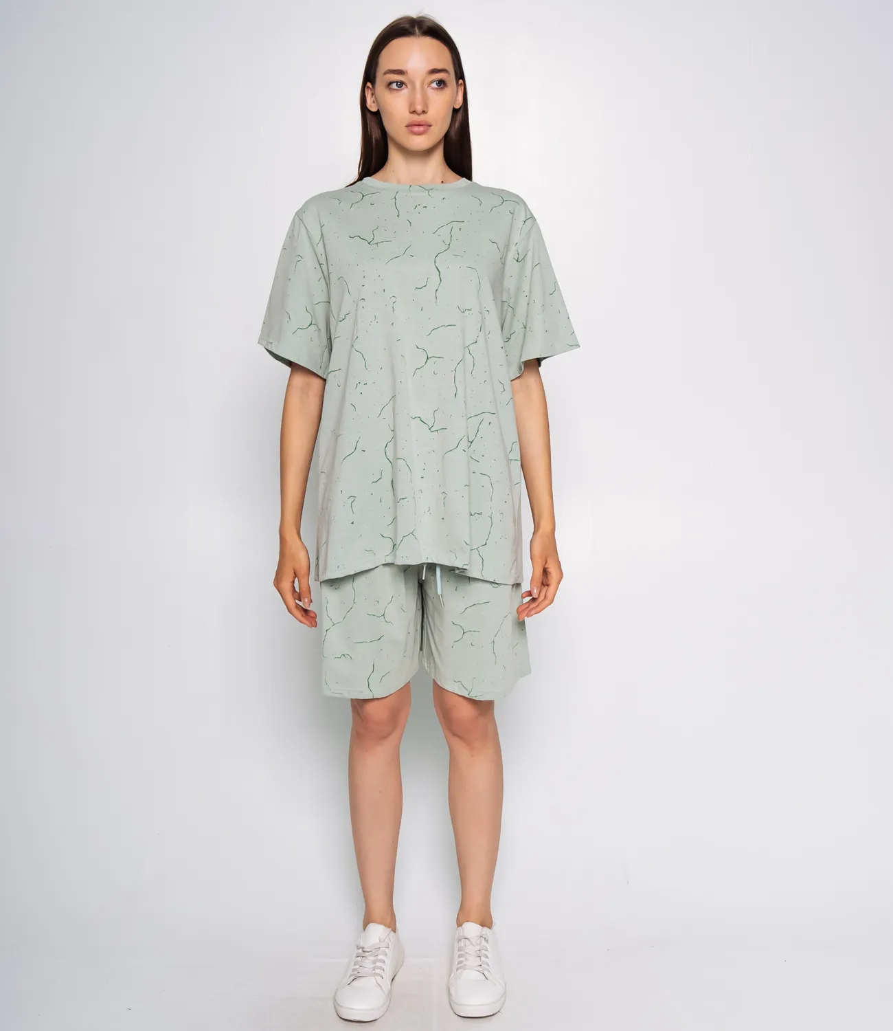 Спортивный костюм – это эффектная часть гардероба, подчеркивающая женственность и уникальность каждой представительницы прекрасного пола. Джинсовый спортивный костюм состоит из двух частей: футболки и шорт. Футболка свободного кроя с короткими рукавами, слегка удлиненная, что позволяет носить её как самостоятельный элемент одежды. Шорты также свободного кроя, с длиной до колена, с эластичным поясом для удобства. Состав ткани: 65% полиэстер, 30% хлопок и 5% эластан. Полиэстер обеспечивает прочность и долговечность, хлопок добавляет мягкость и комфорт, а эластан гарантирует эластичность и свободу движений. Костюм идеально подходит для повседневной носки, активного отдыха или занятий спортом. Предложенная нами цена является приемлемой, что делает этот комплект отличным выбором для оптовых покупателей. Не упустите возможность предложить вашим клиенткам этот стильный спортивный костюм, который станет их любимым выбором для летних дней! Позвольте вашим покупательницам наслаждаться комфортом и элегантностью с этим великолепным комплектом! Рост модели 168 см., 85-63-92.