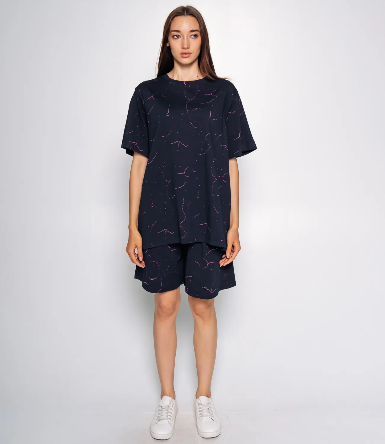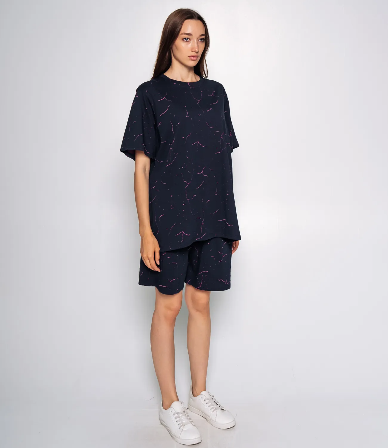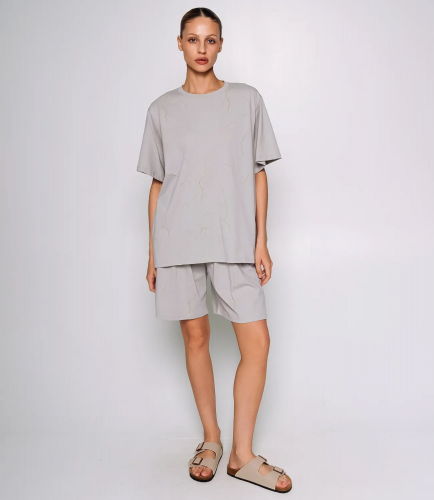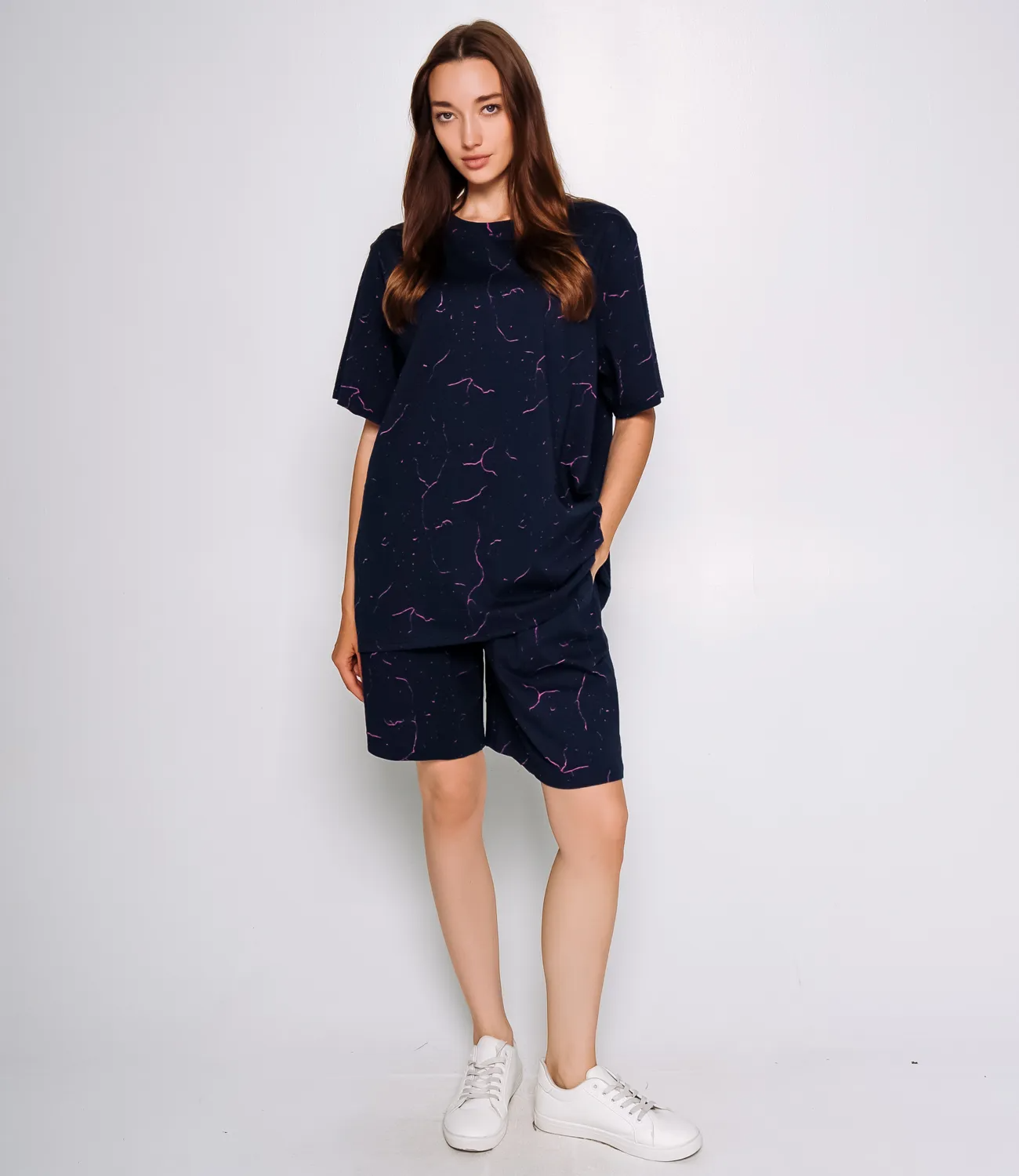 Спортивный костюм – это эффектная часть гардероба, подчеркивающая женственность и уникальность каждой представительницы прекрасного пола. Джинсовый спортивный костюм состоит из двух частей: футболки и шорт. Футболка свободного кроя с короткими рукавами, слегка удлиненная, что позволяет носить её как самостоятельный элемент одежды. Шорты также свободного кроя, с длиной до колена, с эластичным поясом для удобства. Состав ткани: 65% полиэстер, 30% хлопок и 5% эластан. Полиэстер обеспечивает прочность и долговечность, хлопок добавляет мягкость и комфорт, а эластан гарантирует эластичность и свободу движений. Костюм идеально подходит для повседневной носки, активного отдыха или занятий спортом. Предложенная нами цена является приемлемой, что делает этот комплект отличным выбором для оптовых покупателей. Не упустите возможность предложить вашим клиенткам этот стильный спортивный костюм, который станет их любимым выбором для летних дней! Позвольте вашим покупательницам наслаждаться комфортом и элегантностью с этим великолепным комплектом! Рост модели 168 см., 85-63-92.