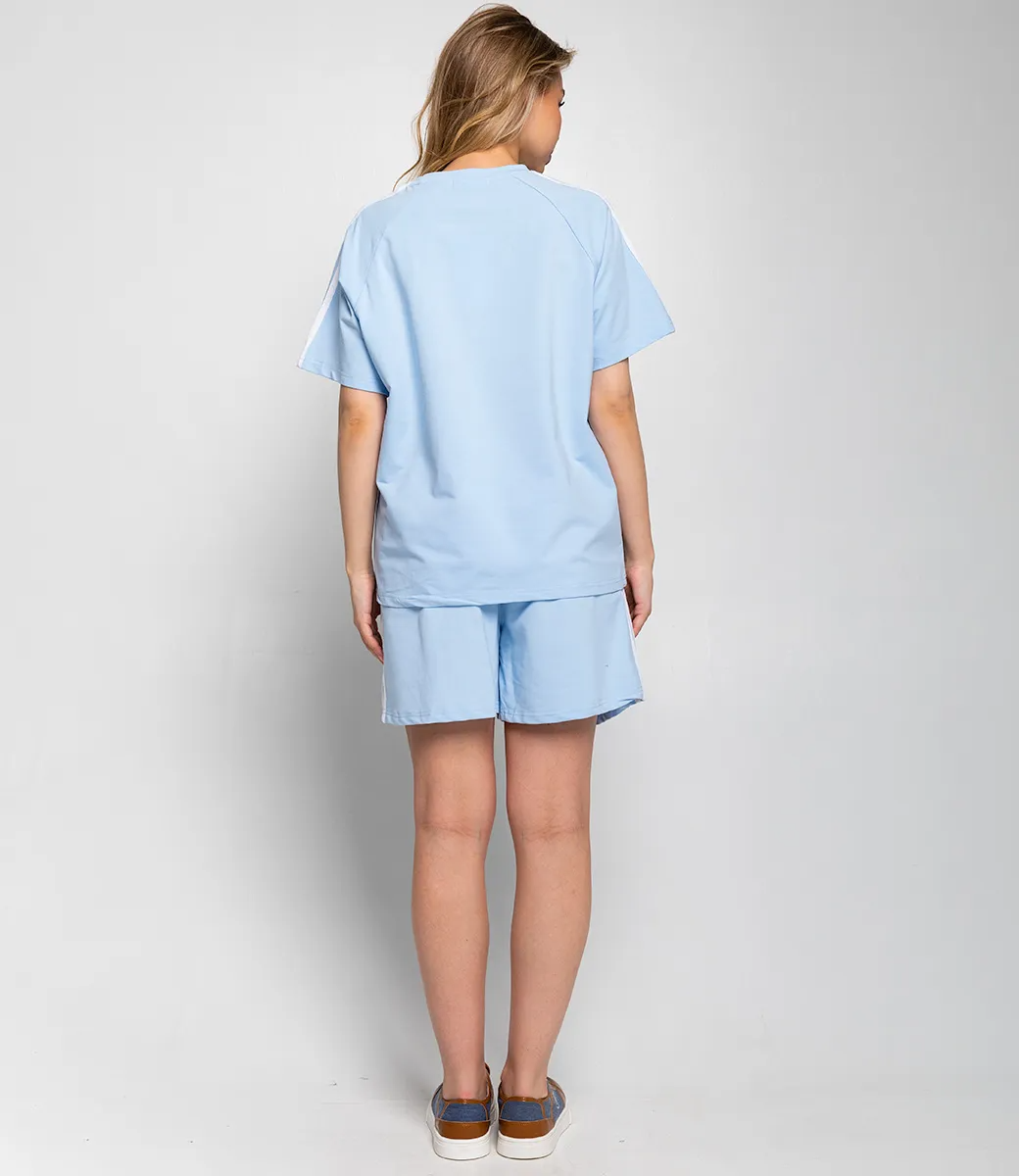 Спортивный костюм станет отличным дополнением вашего ассортимента и привлечет внимание покупателей своей энергией и динамичностью. Футболка свободного кроя с коротким рукавом, обеспечивает комфорт и свободу движений. На передней части — яркий принт в виде надписи. Шорты удобной длины, доходящие до середины бедра, с эластичным поясом. Подходят для активных движений. Изготовленный из высококачественных материалов, состоящий из 90% хлопка и 10% полиэстера, костюм обеспечивает максимальный комфорт. Ткань отличается мягкостью и воздухопроницаемостью, что позволит вашим клиентам чувствовать себя отлично даже в самые активные дни. На странице сайта предоставлена таблица размеров, что упростит покупку и поможет выбрать идеальный вариант без лишних временных затрат. Установленная цена делает этот костюм доступным для широкой аудитории, гарантируя его популярность среди клиентов. Предложите своим покупателям этот яркий и стильный спортивный костюм, который станет отличным элементом их гардероба и поднимет настроение в любой ситуации! Рост модели 168 см., 89-63-90.