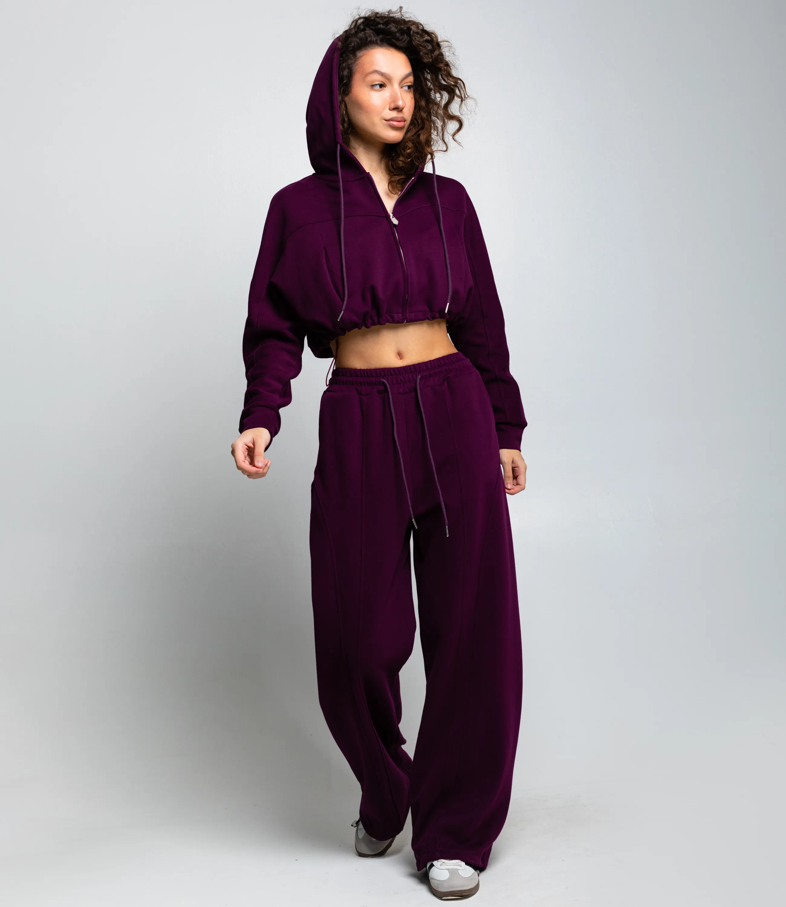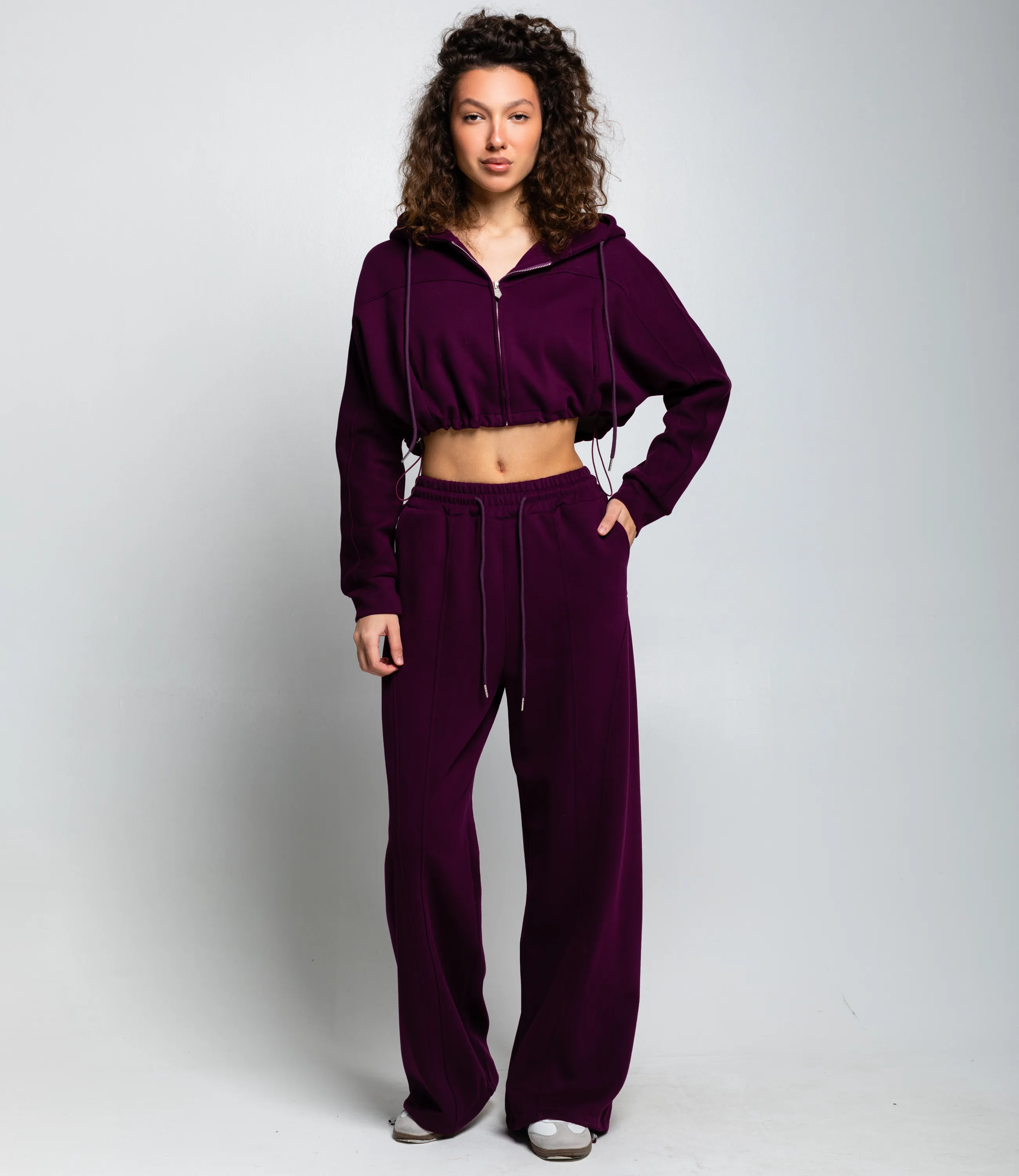 Спортивный костюм – это одежда, которая подчеркивает стиль и комфорт каждой женщины. Костюм состоит из укороченной худи на центральной молнии с капюшоном и шнурками, заниженной линией плеч, эластичным собранным низом и длинными рукавами с манжетами, и свободных широких брюк с завышенной талией на кулиске. Для изготовления использованы ткани 90% хлопок и 10% полиэстер, который характеризуются отличным качеством и дышащими свойствами. Даже после множества стирок изделие не утратит первоначальной красоты. Вы будете носить его с радостью. Обратите внимание на цвет. Он полностью соответствуют фотографии на сайте. Чтобы вы были уверены в размере, мы представили на странице таблицу. Воспользовавшись ею, вы сможете сами обмерить себя и удостовериться. Установленная нами цена является приемлемой. Не откажите себе в удовольствии быть стильной и комфортной!