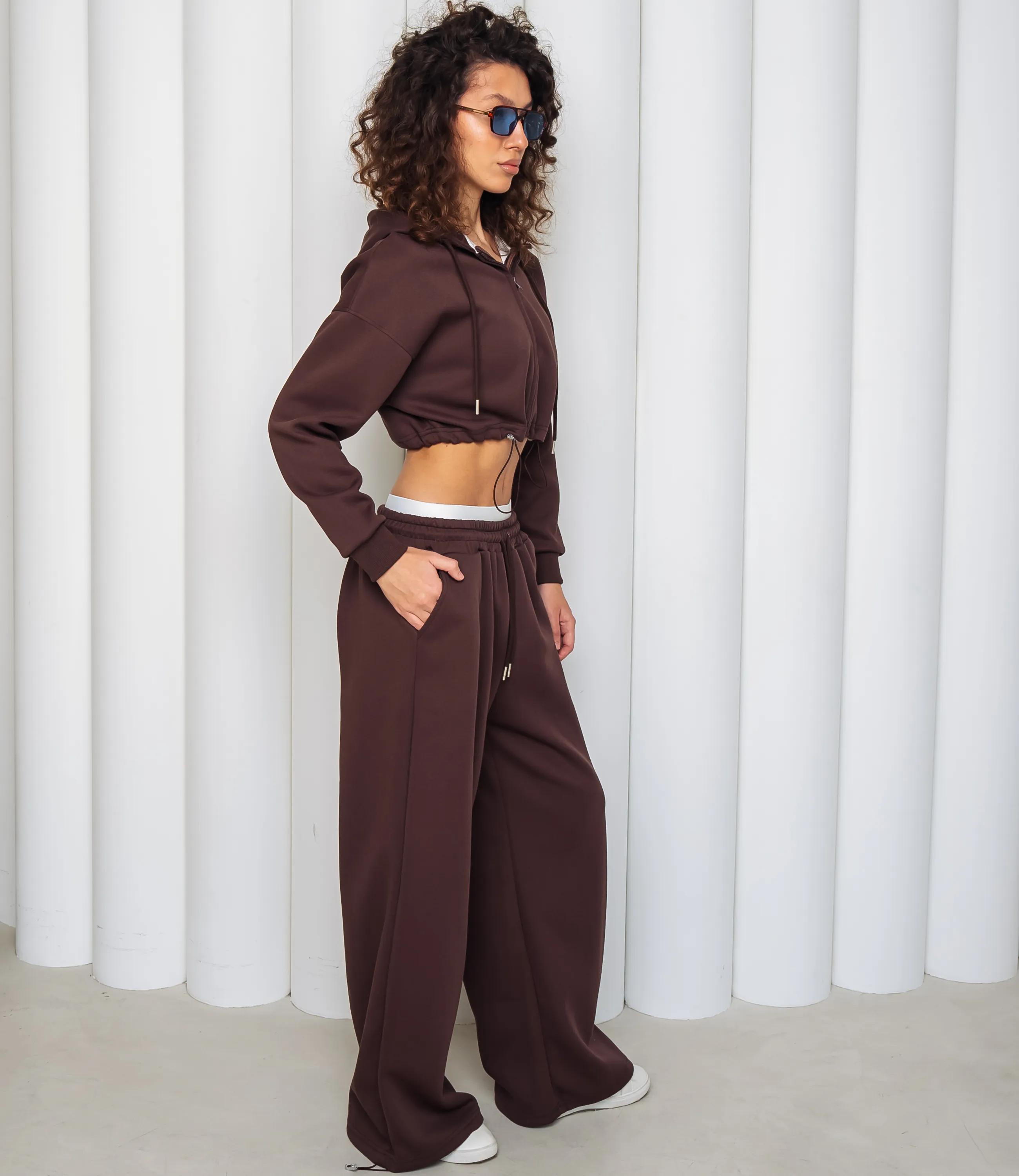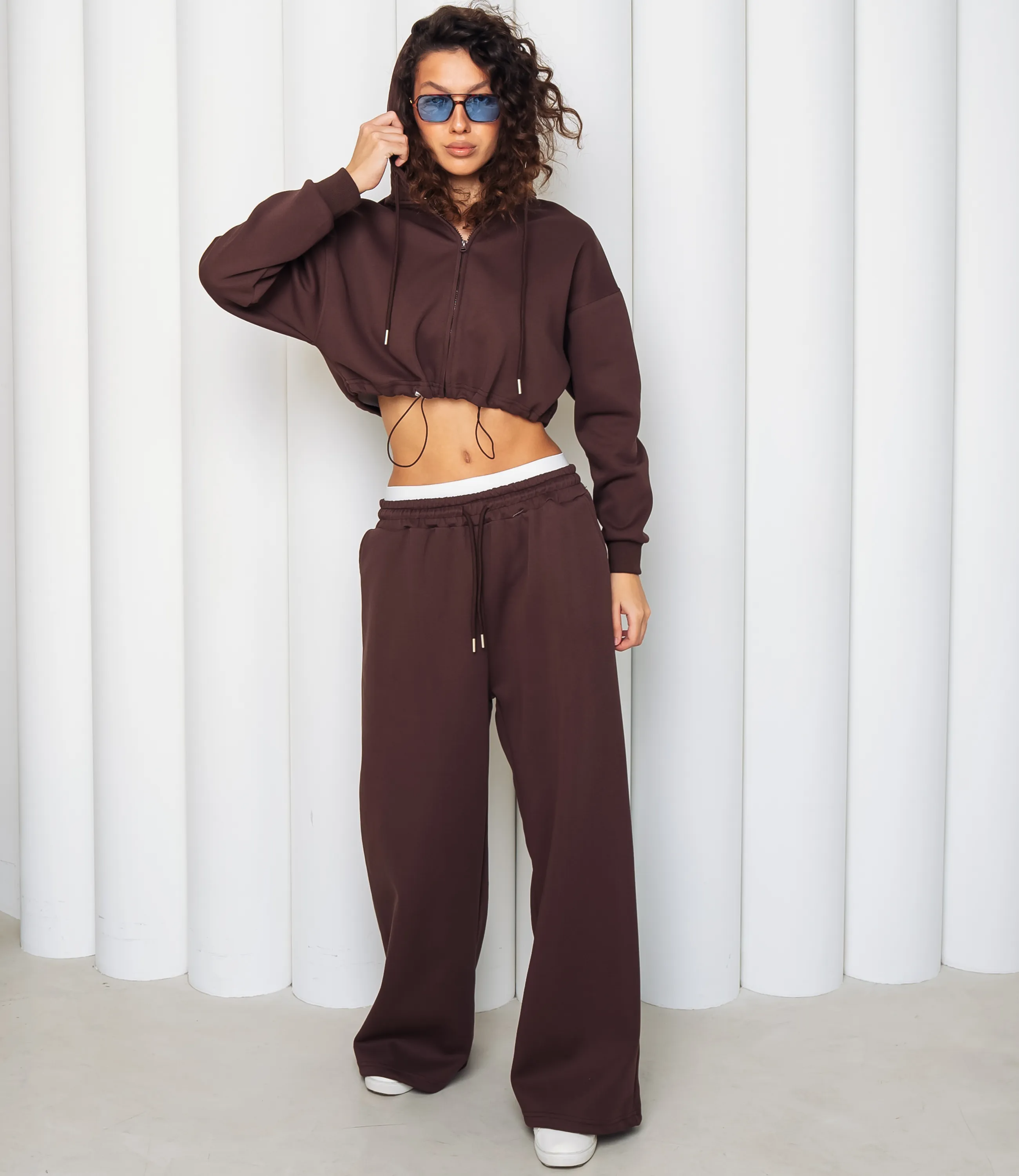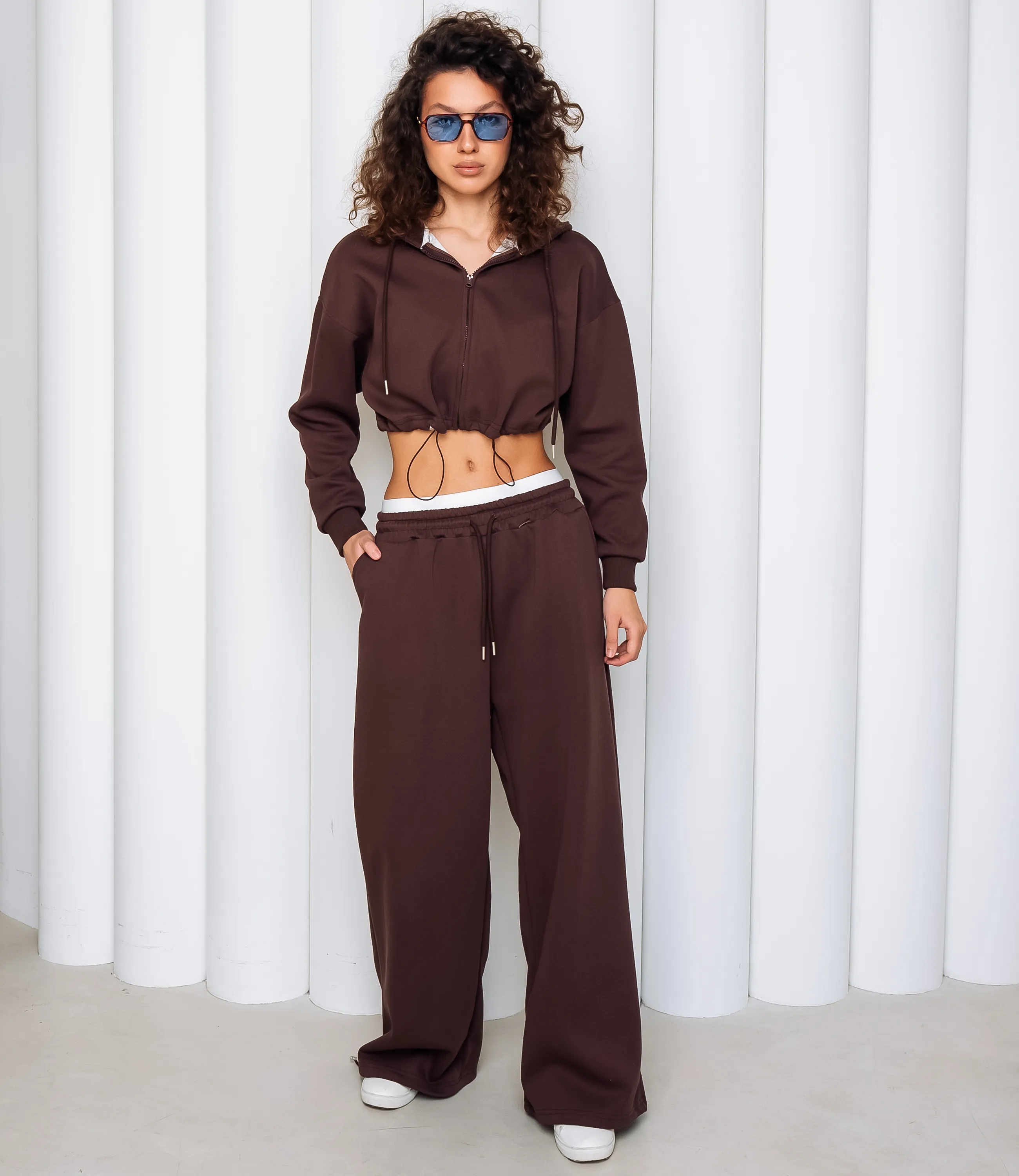 Спортивный костюм – это одежда, которая подчеркивает стиль и комфорт каждой женщины. Укороченный худи на центральной молнии с капюшоном и шнурком, с опущенной линией плеча и длинными рукавами с эластичными манжетами, нижний край худи фиксируется кулиской со стяжкой; свободные прямые брюки с высокой посадкой, широким эластичным поясом и внутренней фиксацией, врезные боковые карманы и эластичные манжеты внизу штанин. Для изготовления использованы ткани 95% хлопок и 5% полиэстер, который характеризуются отличным качеством и дышащими свойствами. Даже после множества стирок изделие не утратит первоначальной красоты. Вы будете носить его с радостью. Обратите внимание на цвет. Он полностью соответствуют фотографии на сайте. Чтобы вы были уверены в размере, мы представили на странице таблицу. Воспользовавшись ею, вы сможете сами обмерить себя и удостовериться. Установленная нами цена является приемлемой. Не откажите себе в удовольствии быть стильной и комфортной!
