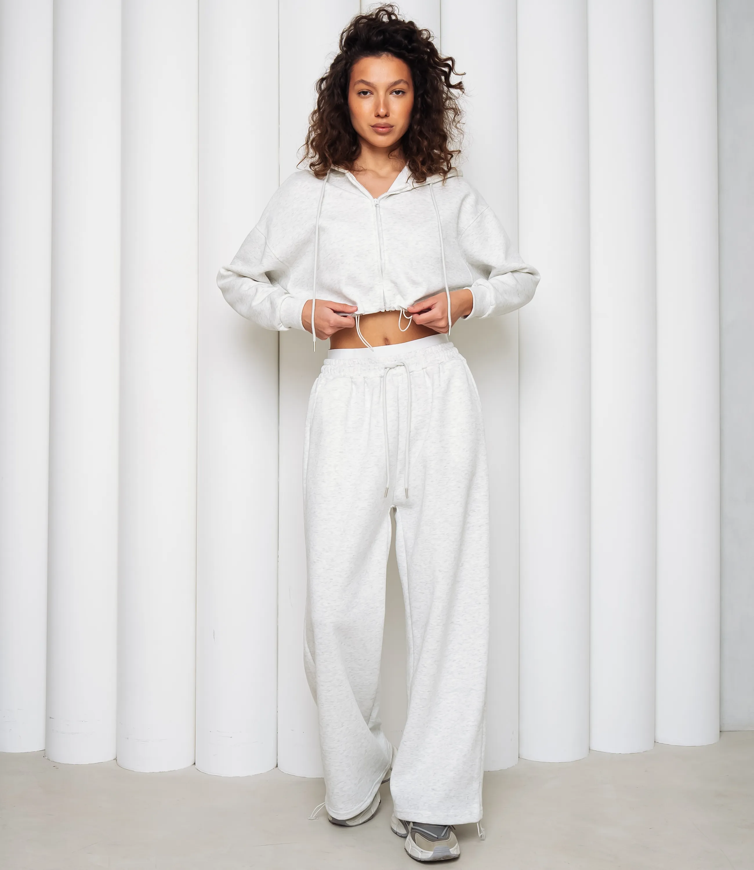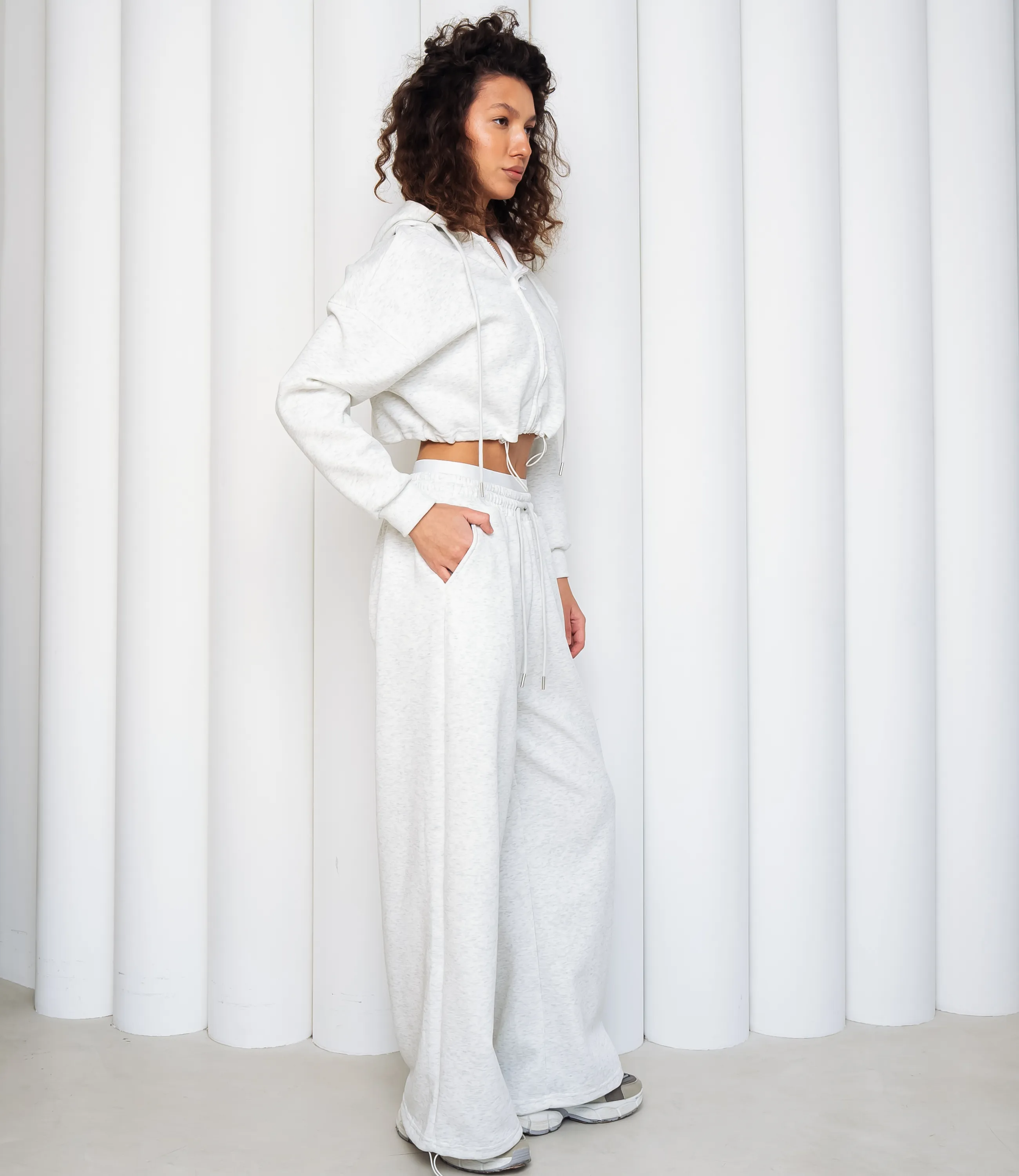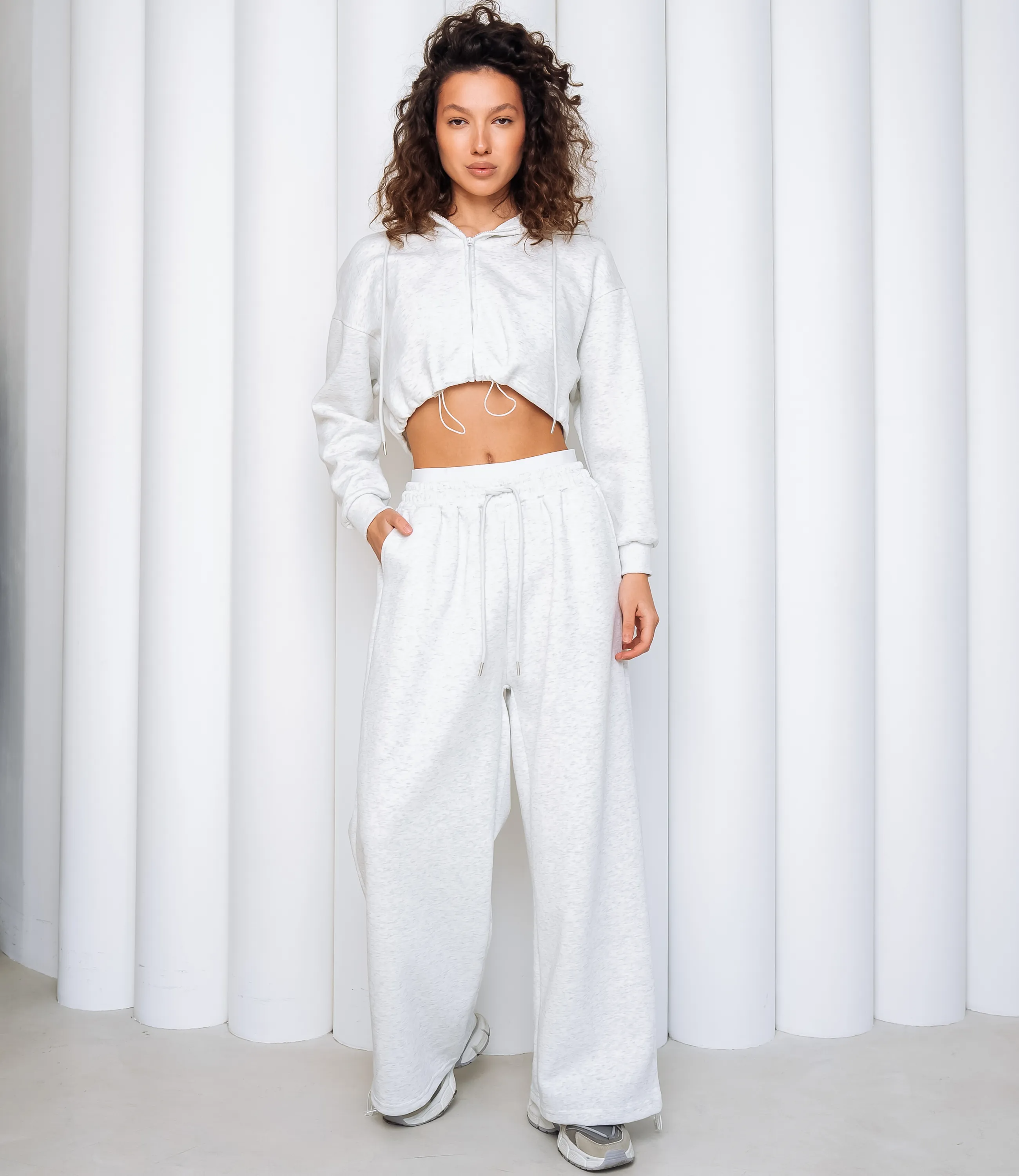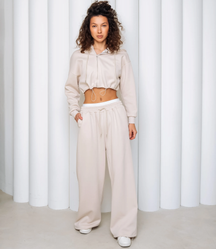 Спортивный костюм – это одежда, которая подчеркивает стиль и комфорт каждой женщины. Укороченный худи на центральной молнии с капюшоном и шнурком, с опущенной линией плеча и длинными рукавами с эластичными манжетами, нижний край худи фиксируется кулиской со стяжкой; свободные прямые брюки с высокой посадкой, широким эластичным поясом и внутренней фиксацией, врезные боковые карманы и эластичные манжеты внизу штанин. Для изготовления использованы ткани 95% хлопок и 5% полиэстер, который характеризуются отличным качеством и дышащими свойствами. Даже после множества стирок изделие не утратит первоначальной красоты. Вы будете носить его с радостью. Обратите внимание на цвет. Он полностью соответствуют фотографии на сайте. Чтобы вы были уверены в размере, мы представили на странице таблицу. Воспользовавшись ею, вы сможете сами обмерить себя и удостовериться. Установленная нами цена является приемлемой. Не откажите себе в удовольствии быть стильной и комфортной!