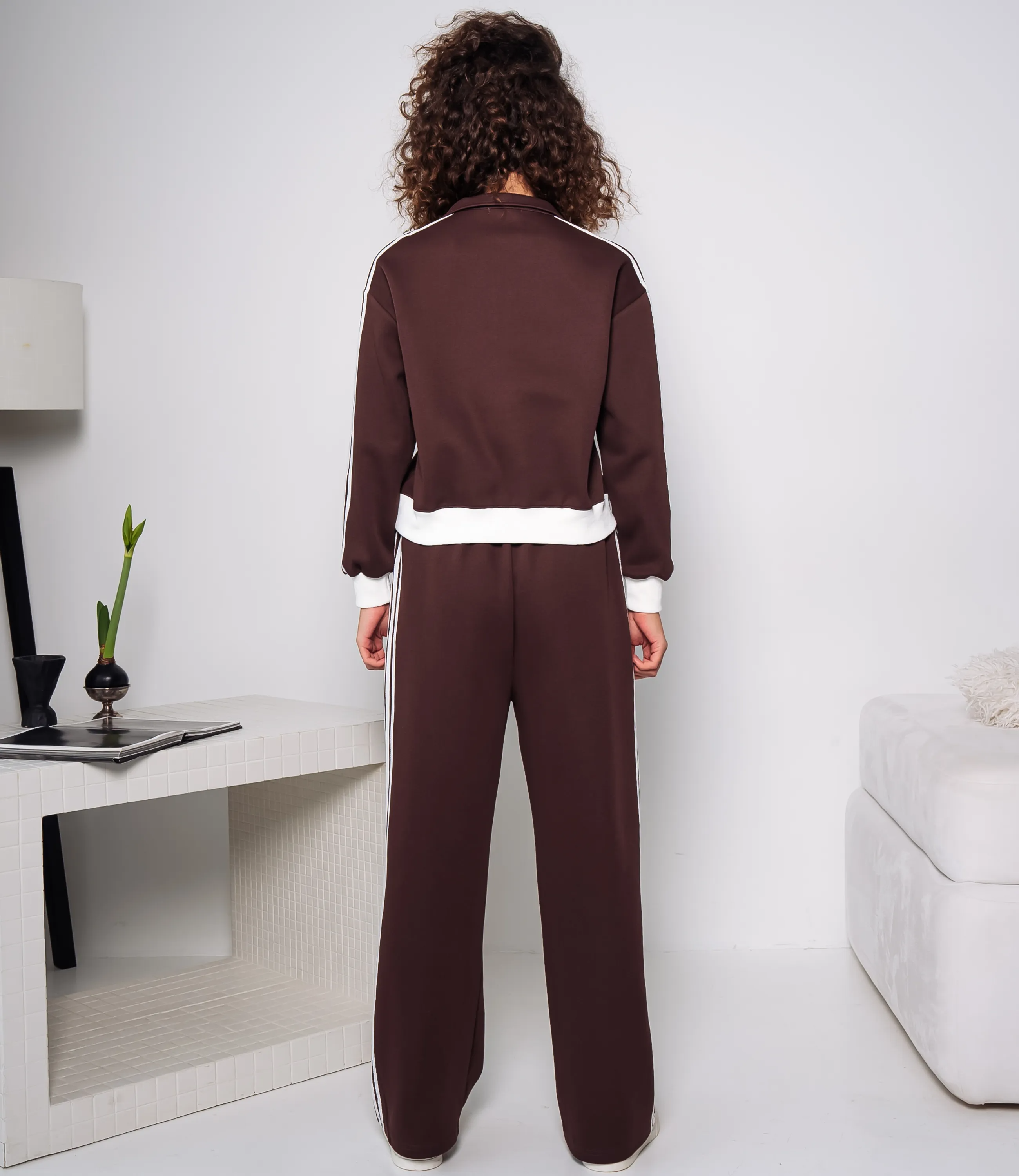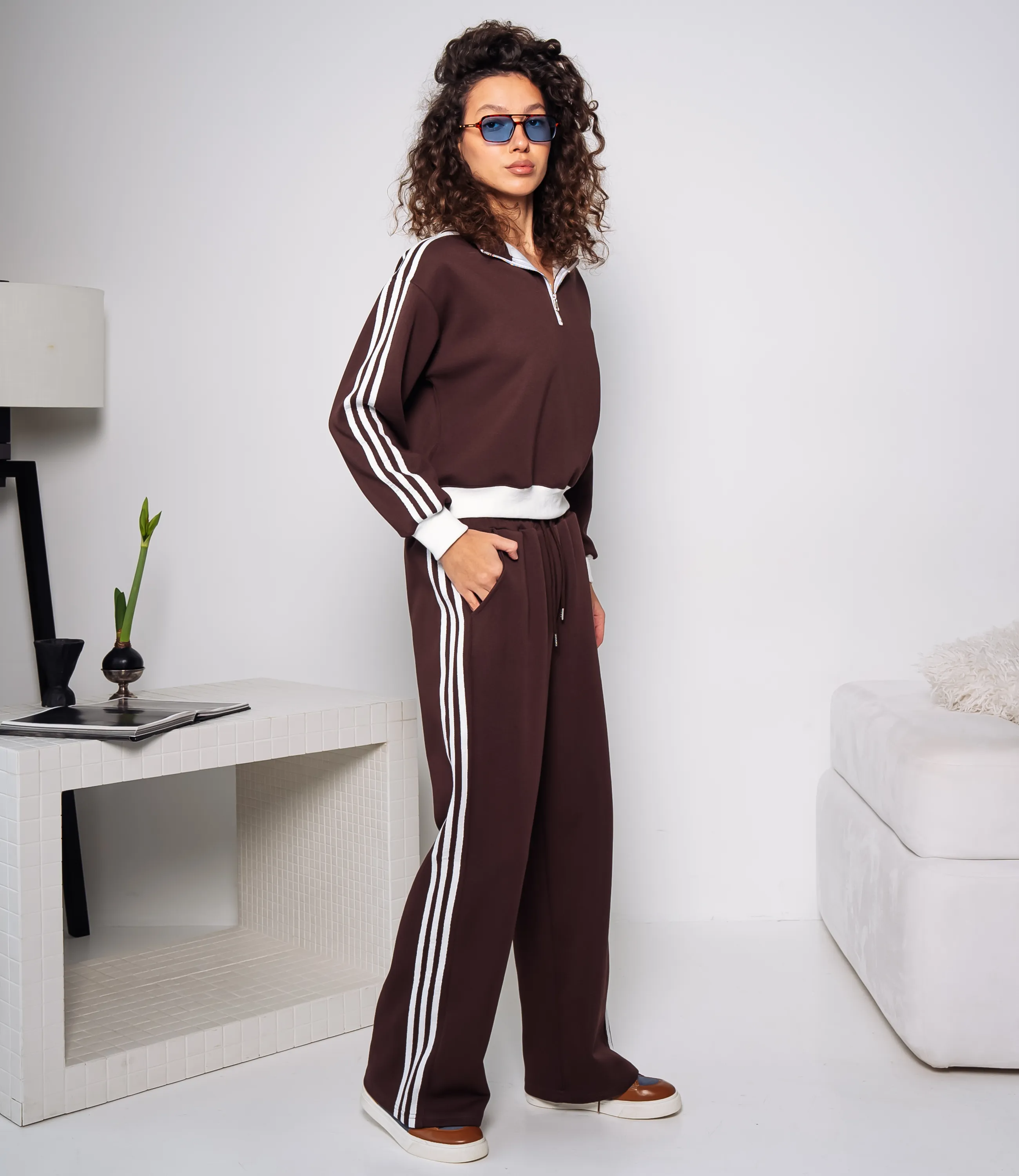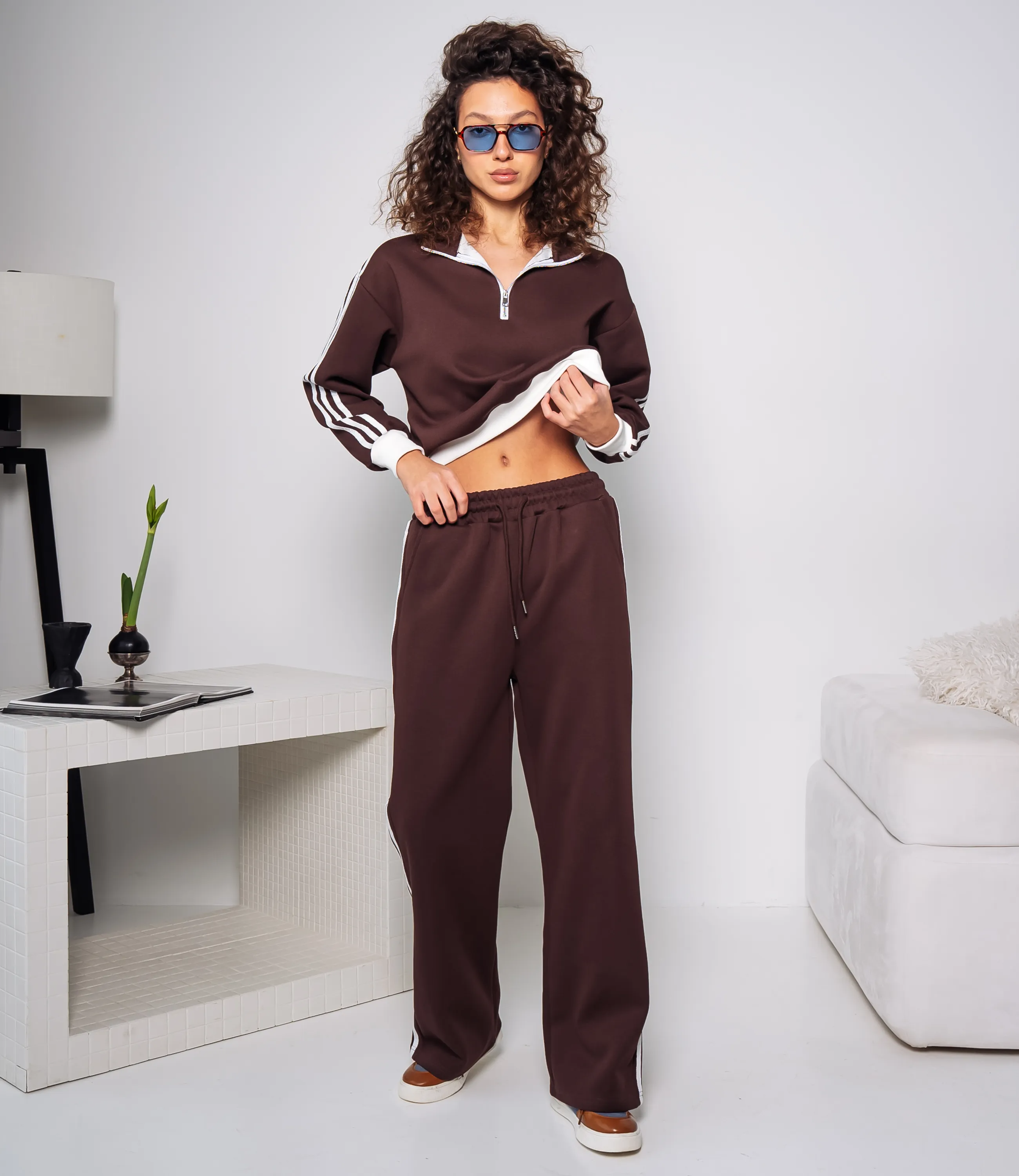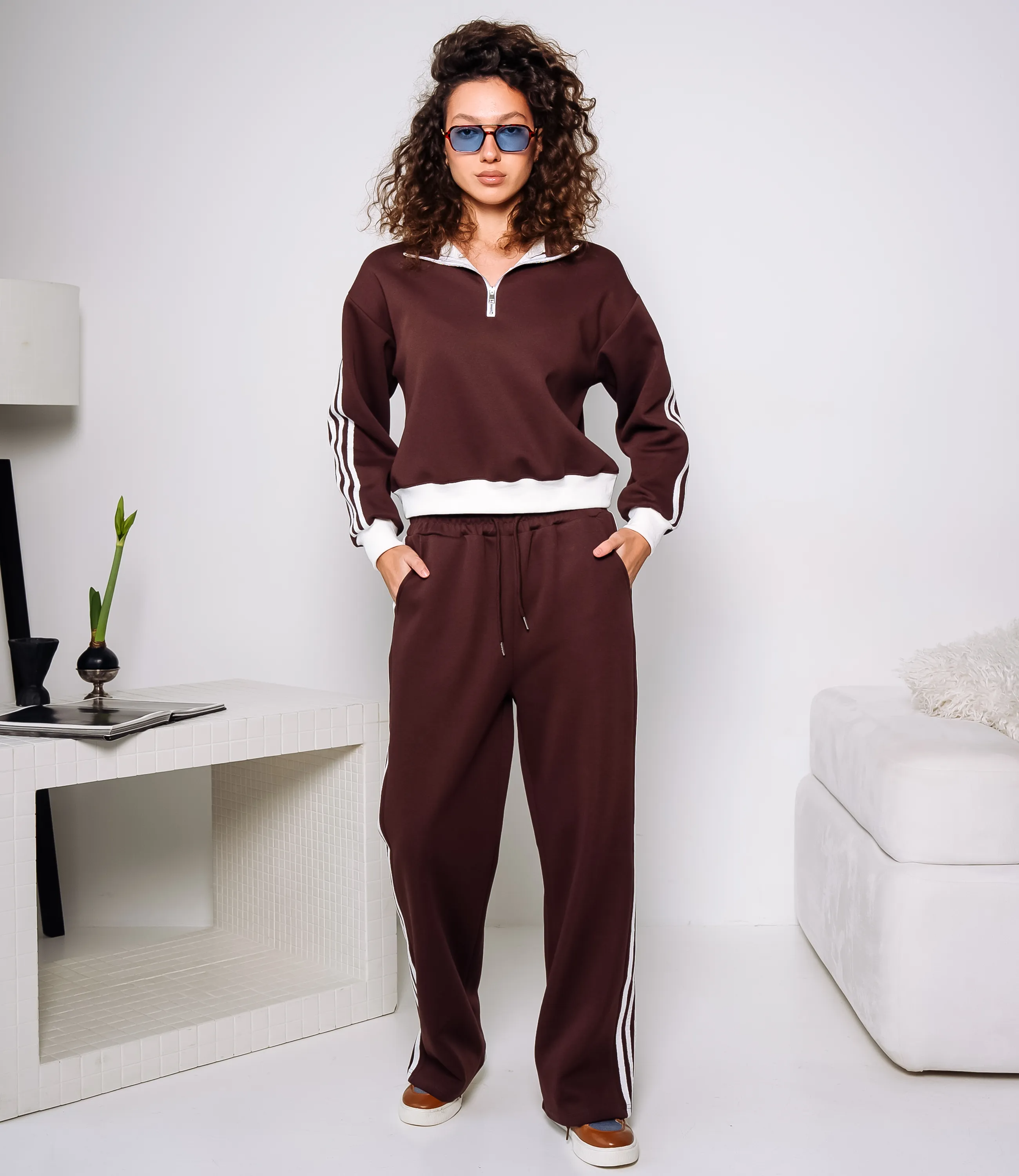 Спортивный костюм – это одежда, которая подчеркивает стиль и комфорт каждой женщины. Укороченная толстовка с воротником-стойкой и короткой центральной молнией, линия плеча опущенная, рукава длинные с манжетами из рубчика; по внешней стороне рукавов декоративные продольные тесьмы, низ талии завершён широким резиновым кантом с эластичной втяжкой, внутренние плоские швы. Брюки прямого, свободного кроя со средней или слегка высокой посадкой, широкий эластичный пояс с наружным шнурком. Для изготовления использованы ткани 95% хлопок и 5% спандекс, который характеризуются отличным качеством и дышащими свойствами. Даже после множества стирок изделие не утратит первоначальной красоты. Вы будете носить его с радостью. Обратите внимание на цвет. Он полностью соответствуют фотографии на сайте. Чтобы вы были уверены в размере, мы представили на странице таблицу. Воспользовавшись ею, вы сможете сами обмерить себя и удостовериться. Установленная нами цена является приемлемой. Не откажите себе в удовольствии быть стильной и комфортной!