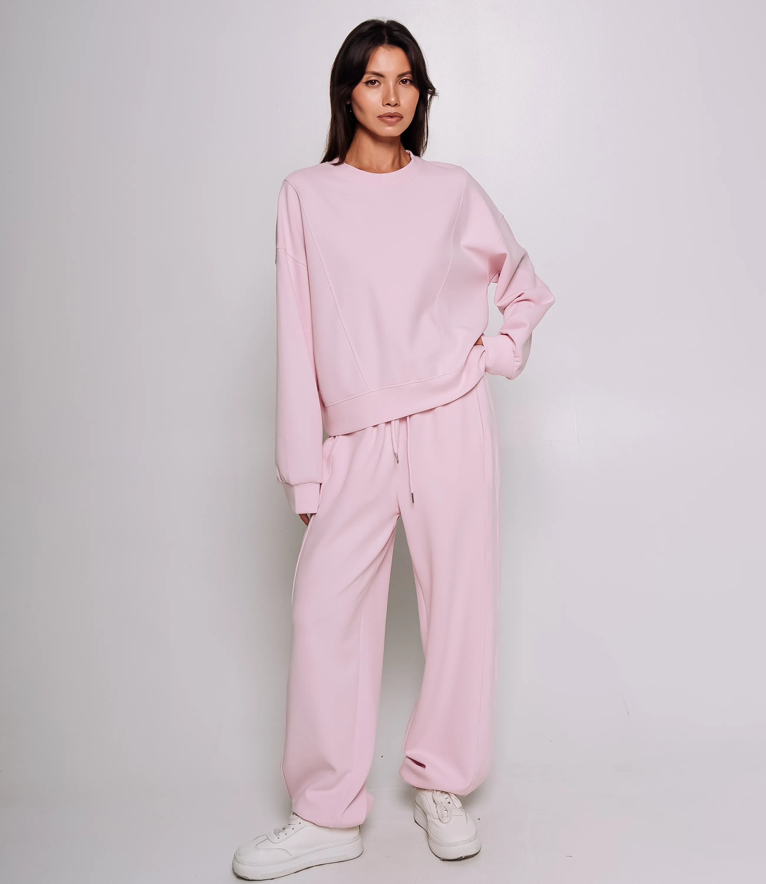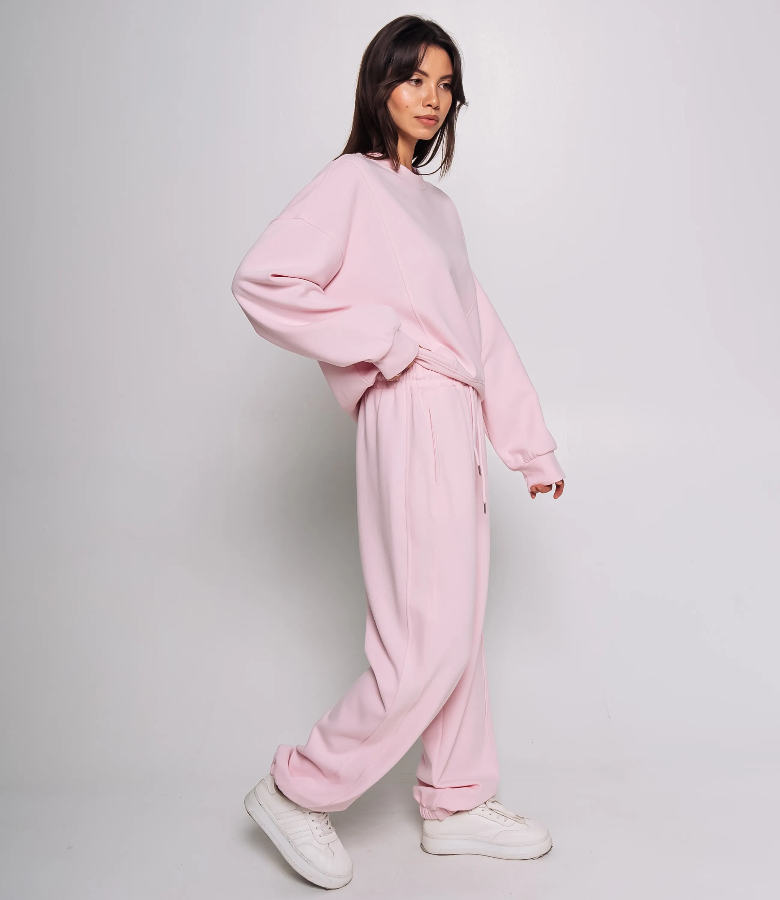 Спортивный костюм — это одежда, которая подчёркивает привлекательность и индивидуальность каждой покупательницы. Модель с свободным кроем создана для тех, кто ценит комфорт, практичность и стиль в повседневной жизни и в активном отдыхе: свитшот с круглым вырезом и длинными рукавами на манжетах гармонично сочетается с брюками на эластичном поясе со шнурком и функциональными карманами. Для пошива использована ткань 65% хлопок, 33% полиэстер и 2% эластан — сочетание мягкости натурального волокна и износостойкости синтетики. Материал плотный, с гладкой текстурой, приятный на ощупь, хорошо держит форму, сохраняет насыщенность цвета и уменьшает деформации при частой носке и стирках. Такая конструкция минимизирует причину возвратов и рекламаций, что важно для оптовых закупщиков. Цвета соответствуют фото на сайте; на странице размещена подробная таблица размеров для точного подбора. Рост модели 164 см., 83-61-89.