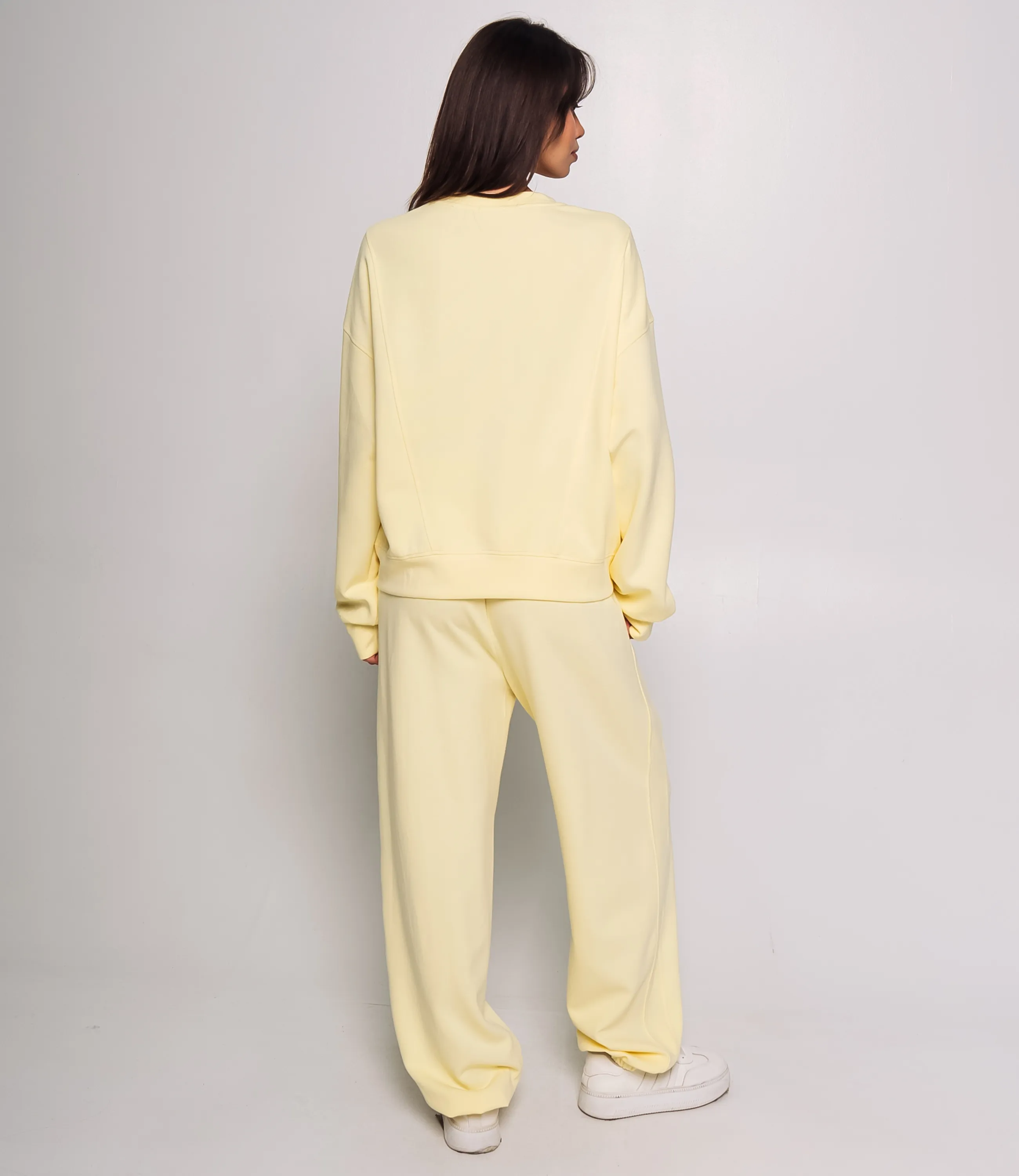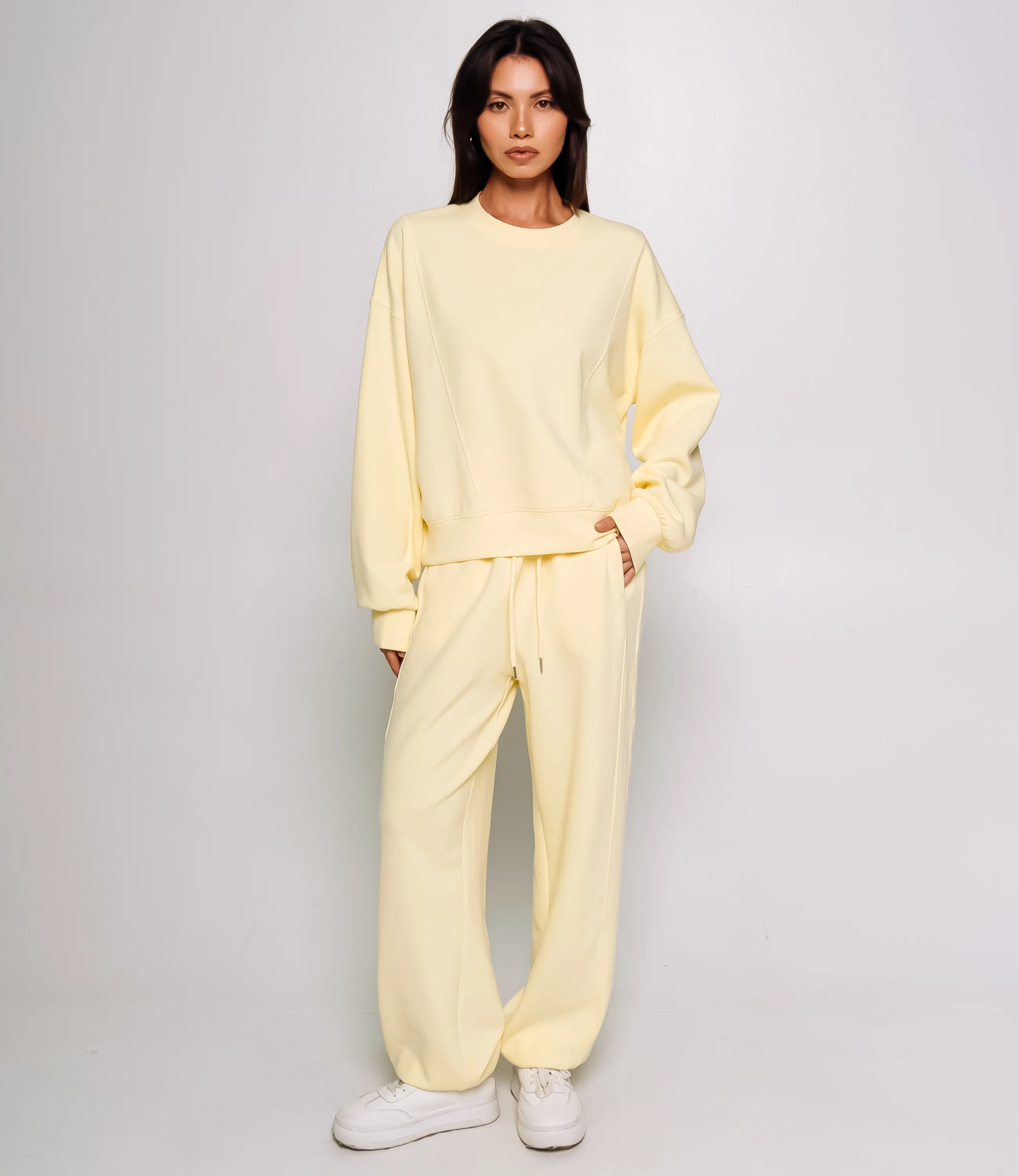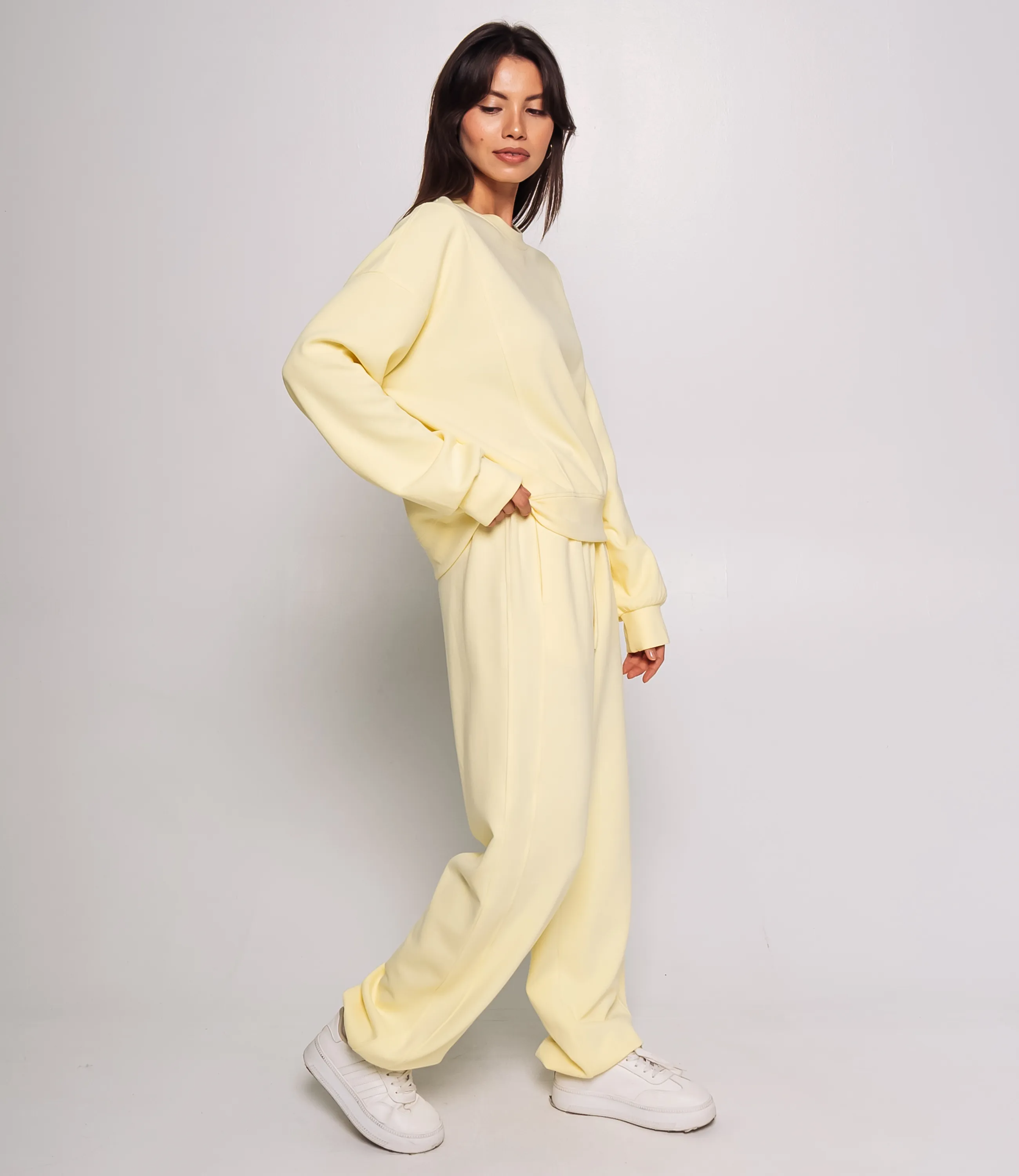 Спортивный костюм — это одежда, которая подчёркивает привлекательность и индивидуальность каждой покупательницы. Модель с свободным кроем создана для тех, кто ценит комфорт, практичность и стиль в повседневной жизни и в активном отдыхе: свитшот с круглым вырезом и длинными рукавами на манжетах гармонично сочетается с брюками на эластичном поясе со шнурком и функциональными карманами. Для пошива использована ткань 65% хлопок, 33% полиэстер и 2% эластан — сочетание мягкости натурального волокна и износостойкости синтетики. Материал плотный, с гладкой текстурой, приятный на ощупь, хорошо держит форму, сохраняет насыщенность цвета и уменьшает деформации при частой носке и стирках. Такая конструкция минимизирует причину возвратов и рекламаций, что важно для оптовых закупщиков. Цвета соответствуют фото на сайте; на странице размещена подробная таблица размеров для точного подбора. Рост модели 164 см., 83-61-89.