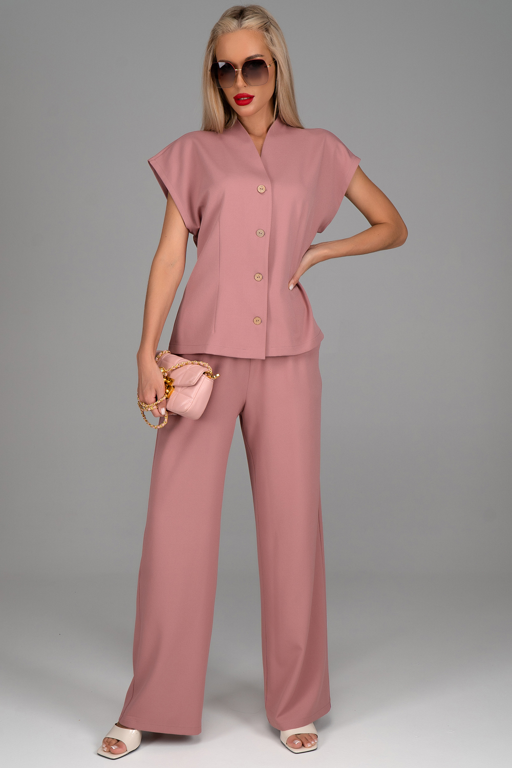 Дорогие девушки, позвольте представить вам настоящий must-have сезона – наш элегантный костюм который станет неотъемлемой частью вашего гардероба. Почему именно этот костюм? Давайте разберёмся. Во-первых, он выполнен из приятной костюмной ткани, что сразу придает ему роскошный вид. Вас точно заметят. Элегантный комплект состоящий из жилета и широких брюк – идеальный вариант для разных событий и мероприятий. Но самое главное – это его способность легко интегрироваться в любые сочетания с любыми вещами из гардероба. Настоящий ключ к вашему модному и современному образу. Попробуйте его сами и ощутите, как легко и изящно можно выглядеть в любой ситуации. (Брюки на резинке).