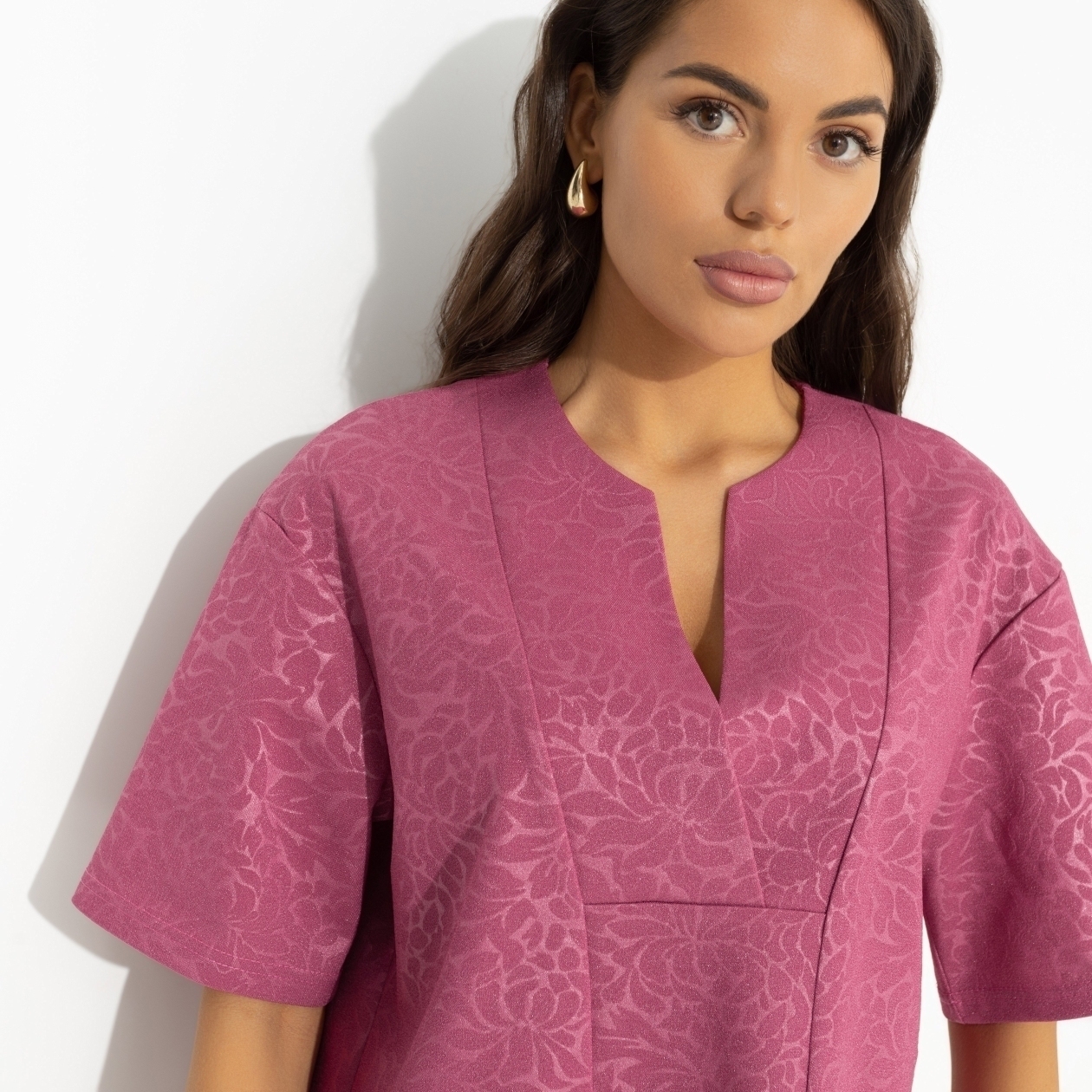 Блуза свободного кроя «Позиция лидера (pink)» от CHARUTTI — это истинное воплощение элегантности и универсальности. Эта женская блуза станет идеальным выбором для тех, кто хочет подчеркнуть свою индивидуальность и харизму. Изготовленная из текстурных тканей «Скуба» и «жаккард», она придаёт образу глубину и изысканность. Деликатный V-образный вырез и слегка спущенная линия рукава делают её идеальной для любого случая — будь то вечерняя прогулка с друзьями или важная встреча на работе. Если вы ищете блузку, которая станет основой гардероба, то эта модель — ваш идеальный выбор.