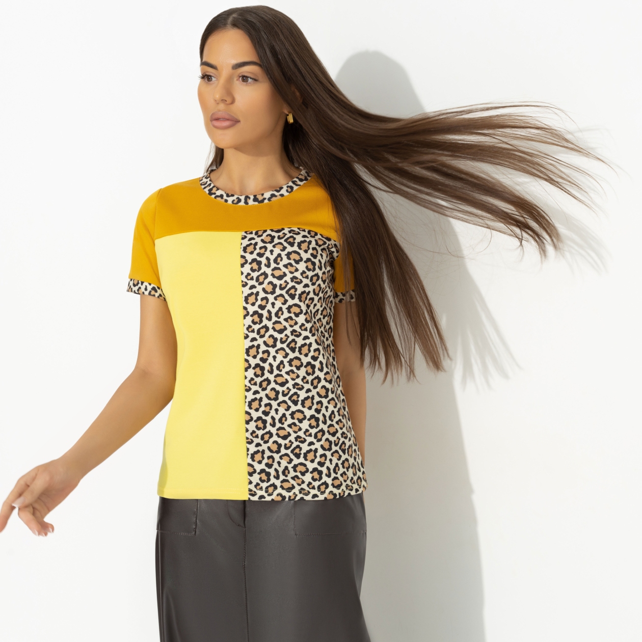 • АртикулФутболка комбинированная, Стильное сочетание (оранжевая)