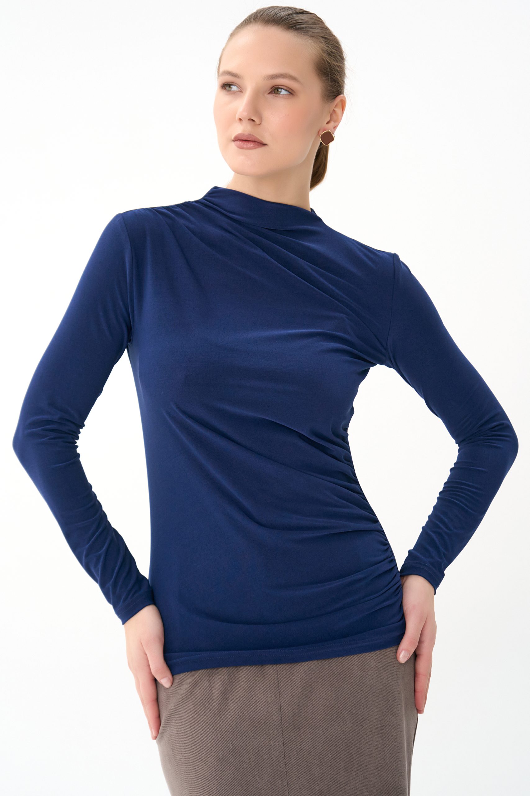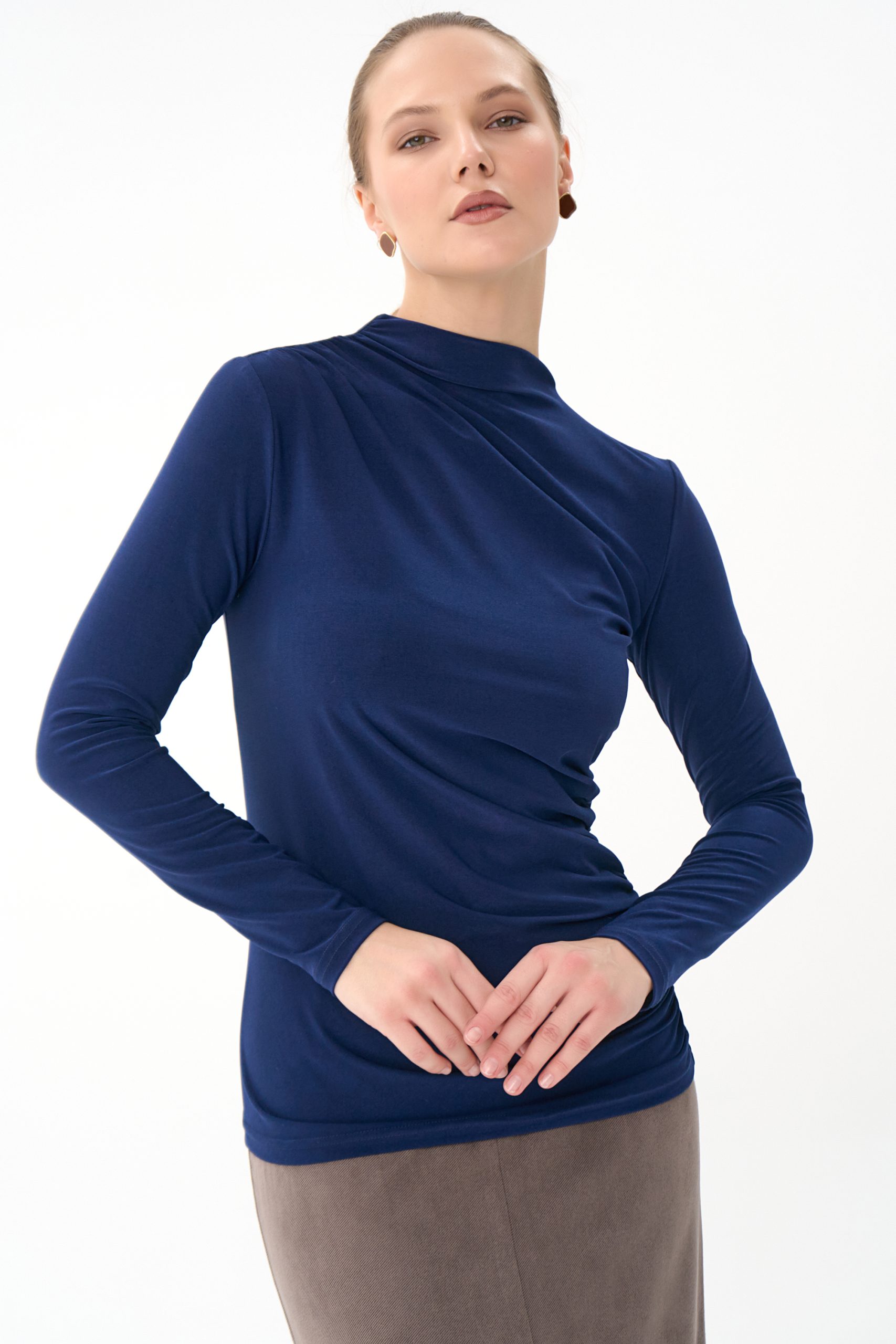 Этот лонгслив станет универсальной базой в гардеробе, добавляя образам женственность и аккуратный акцент за счёт выразительной драпировки и насыщенного цвета