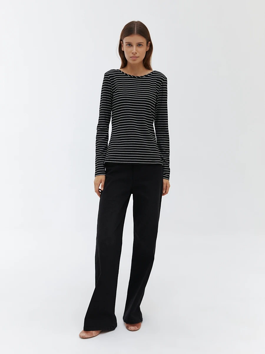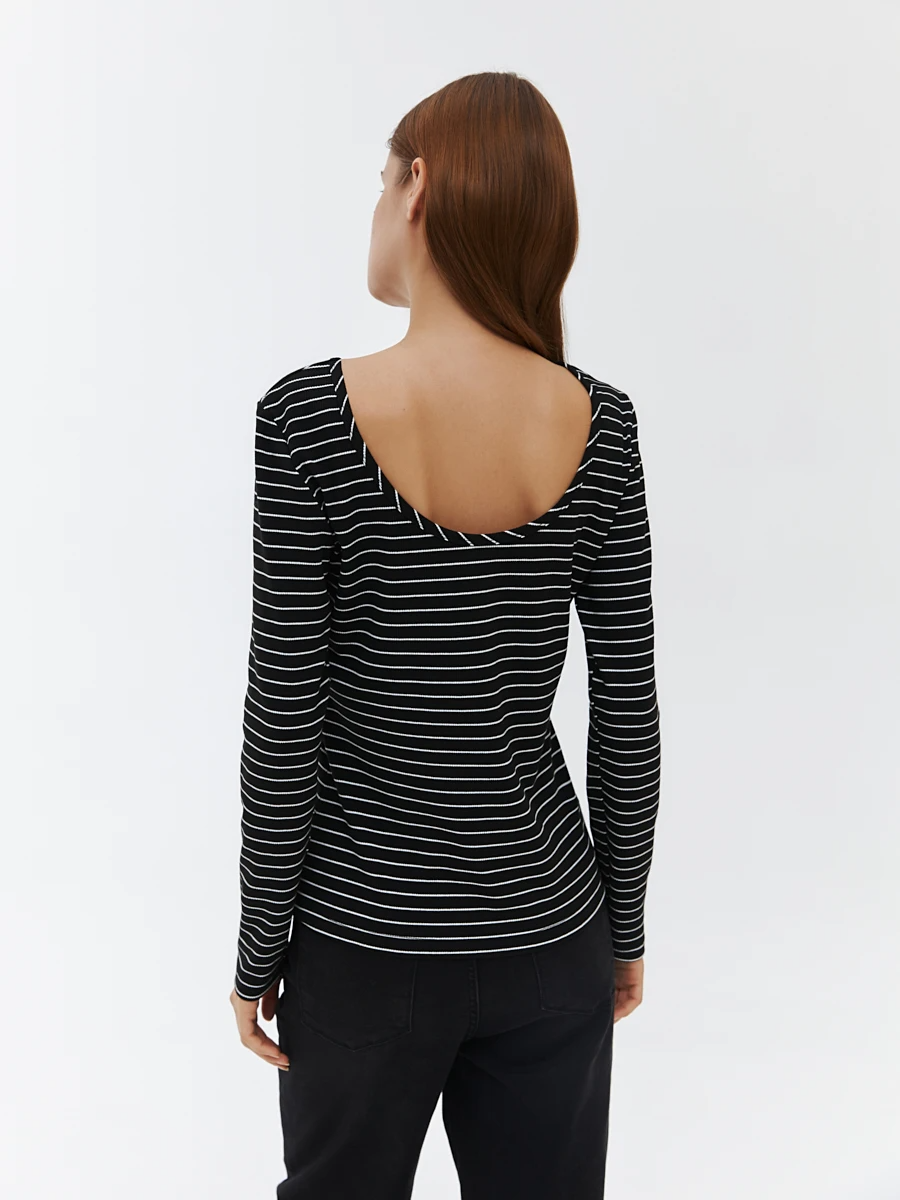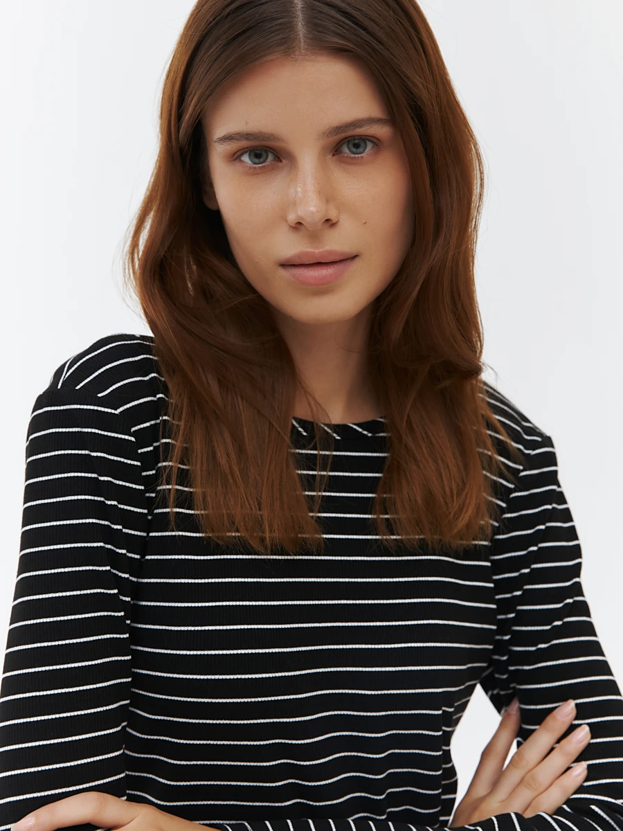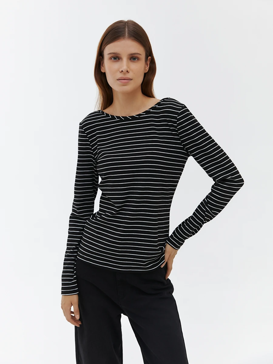 Ст.цена 1190р Лонгслив в полоску Черный 72.777.6042.201.1