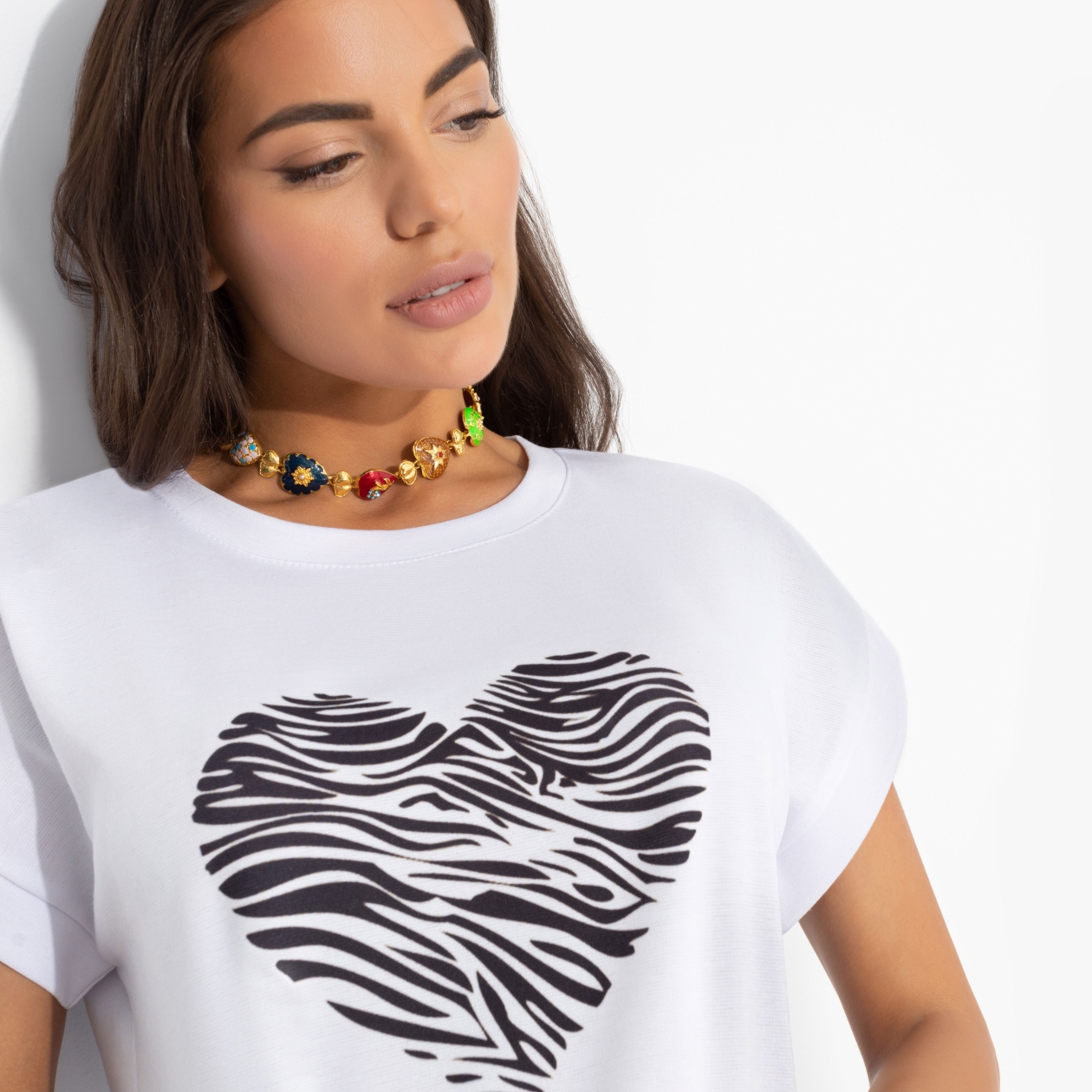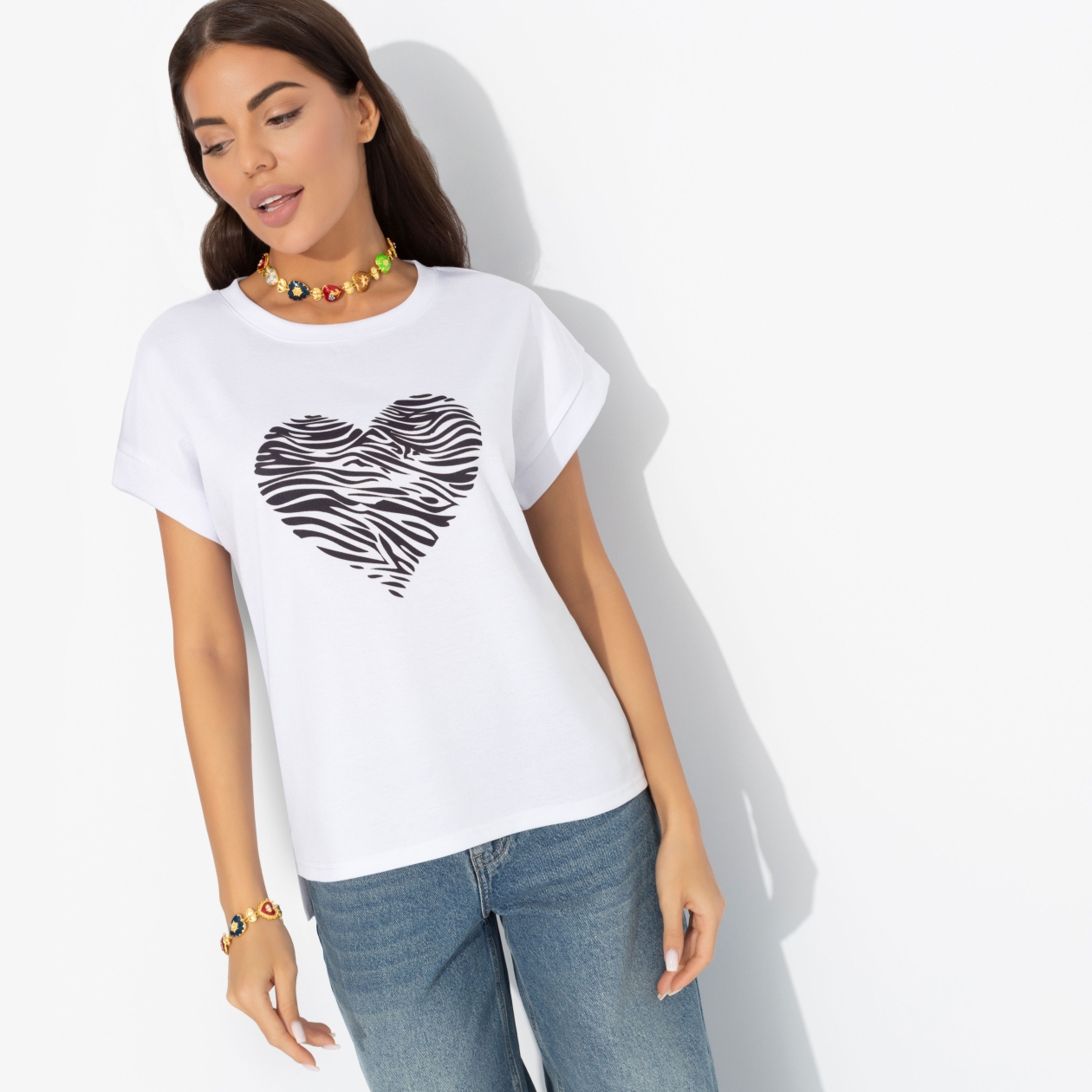 Вы открыты для всех и всего. Но в первую очередь для футболки от ЧАРУТТИ. Потому что это полный match. Ваши сердца звучат в унисон. Футболка прямого кроя. Спинка чуть длиннее передней. Сердечко с анималистическим флером. Цельнокроеный рукав, отвороты прошиты. Изделие хорошо смотрится в заправленном виде и навыпуск. Ошибка при загрузке данных! (https://charutti.ru/upload/video-site/00000011795_video_site.mp4)