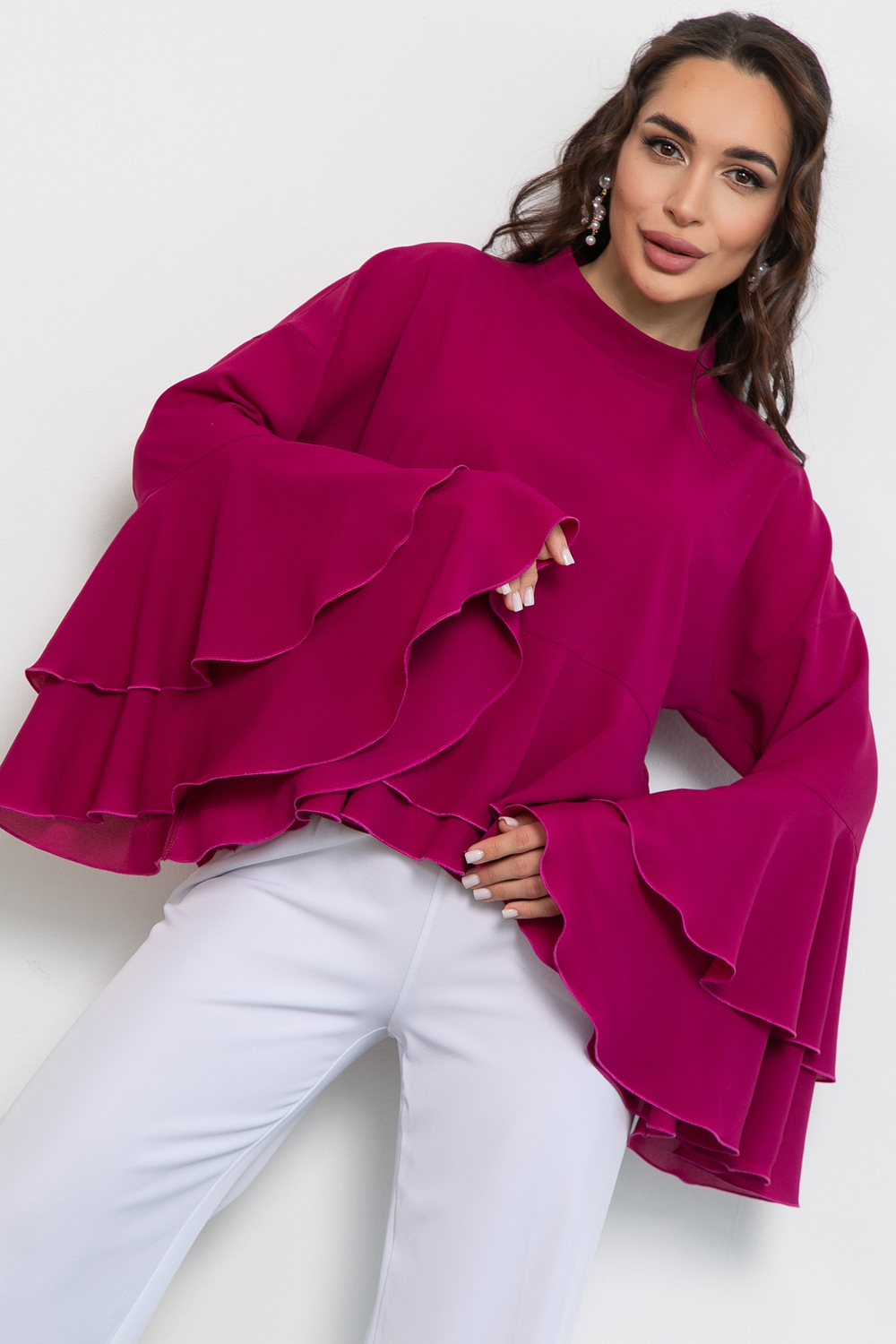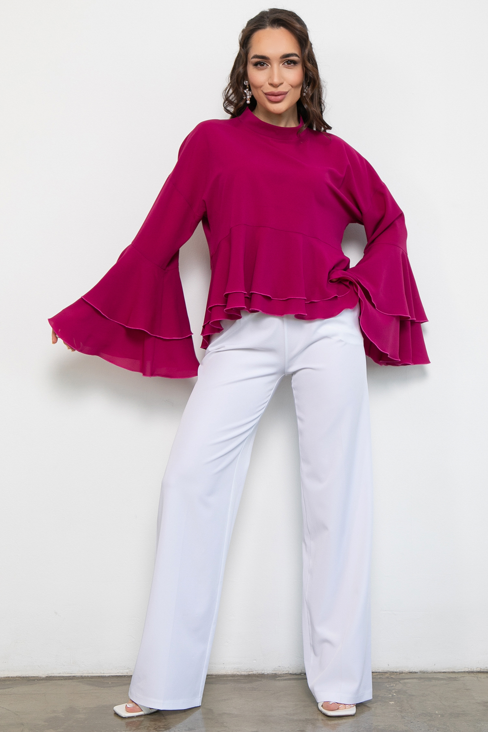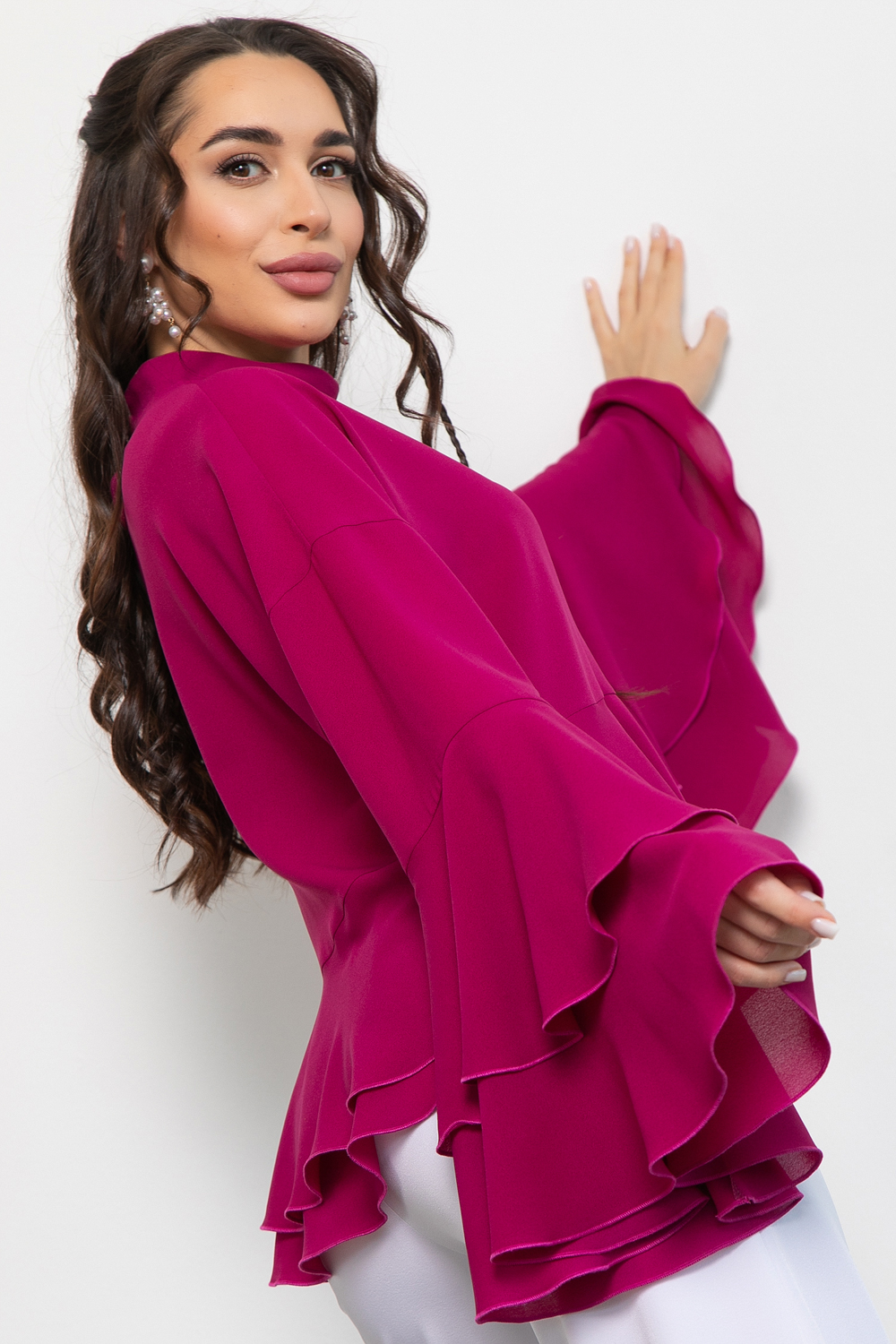 Представляем вашему вниманию изысканную тунику, которая идеально подойдет для нарядных случаев. Эта блузка с длинным рукавом с воланом станет отличным выбором для вечеринок, праздничных мероприятий или романтических встреч.