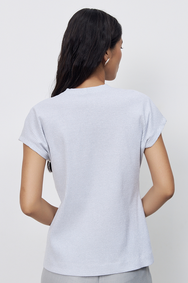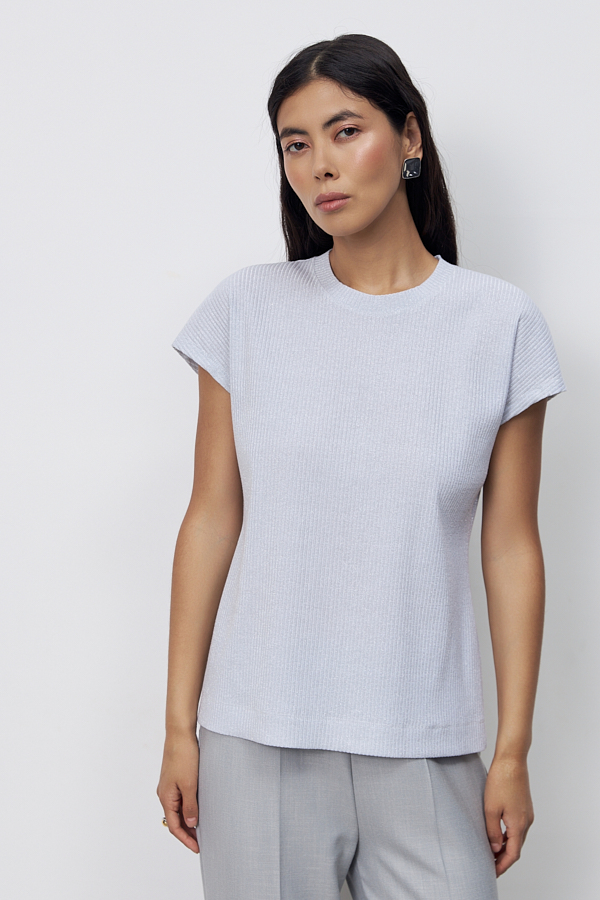 Джемпер свободного силуэта из фактурного эластичного полотна с люрексом. Цельнокроеный короткий рукав. Круглый вырез горловины оформлен бейкой. Женский джемпер стал незаменимой и популярной разновидностью одежды, которая может применяться буквально во всех случаях жизни.