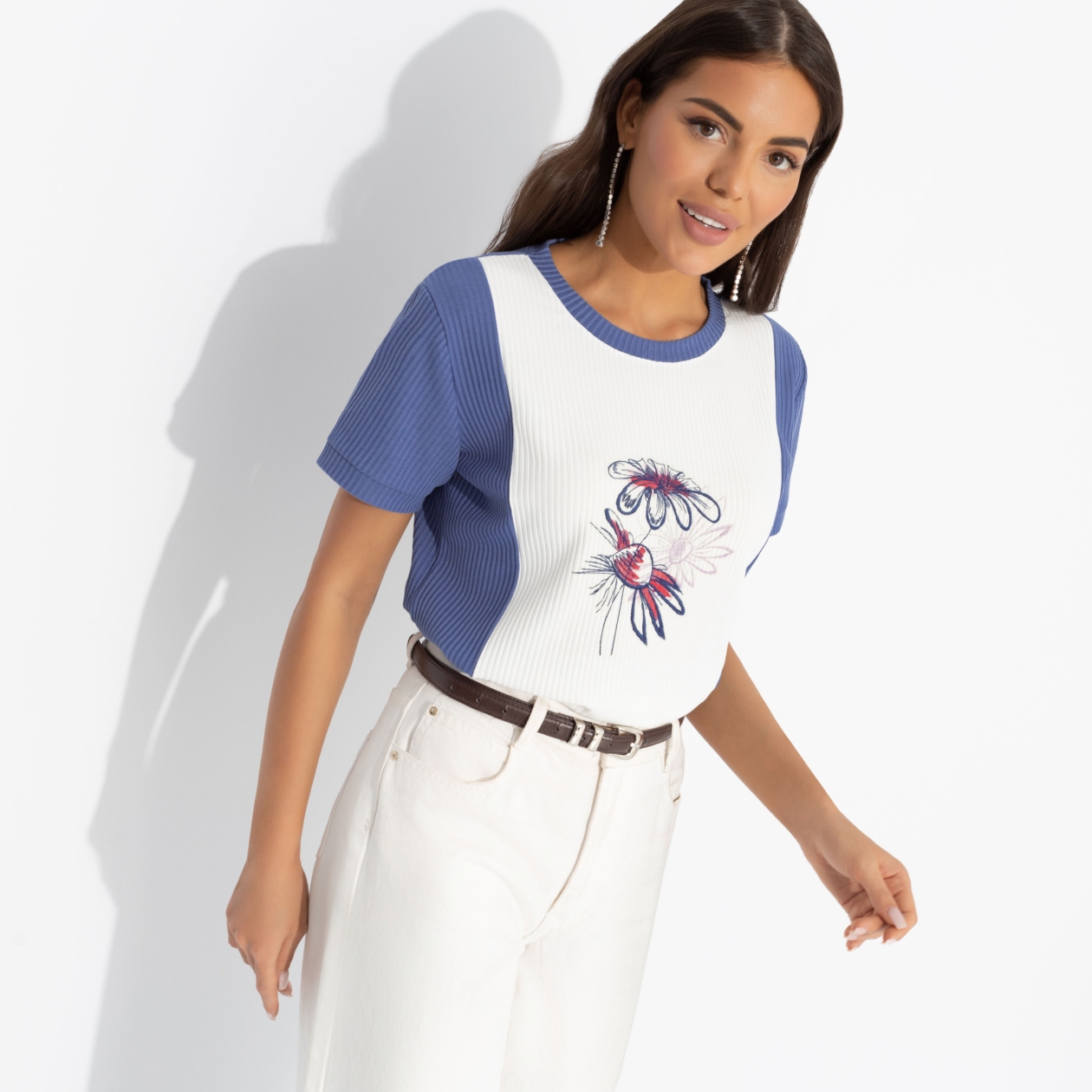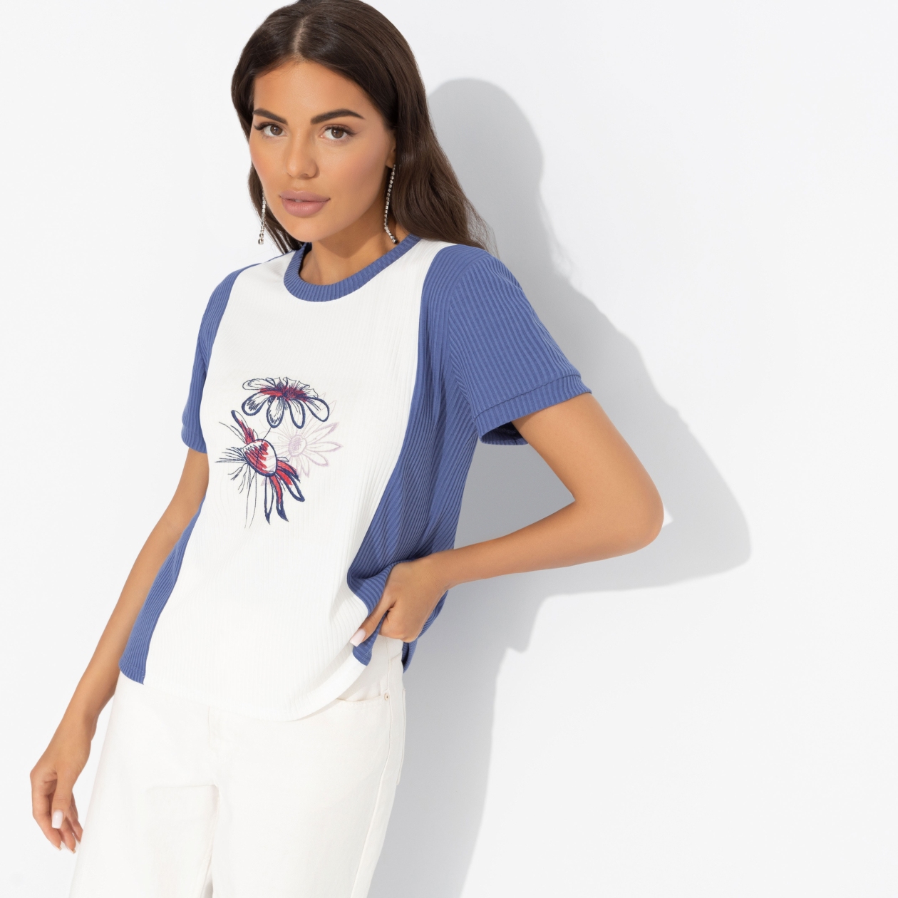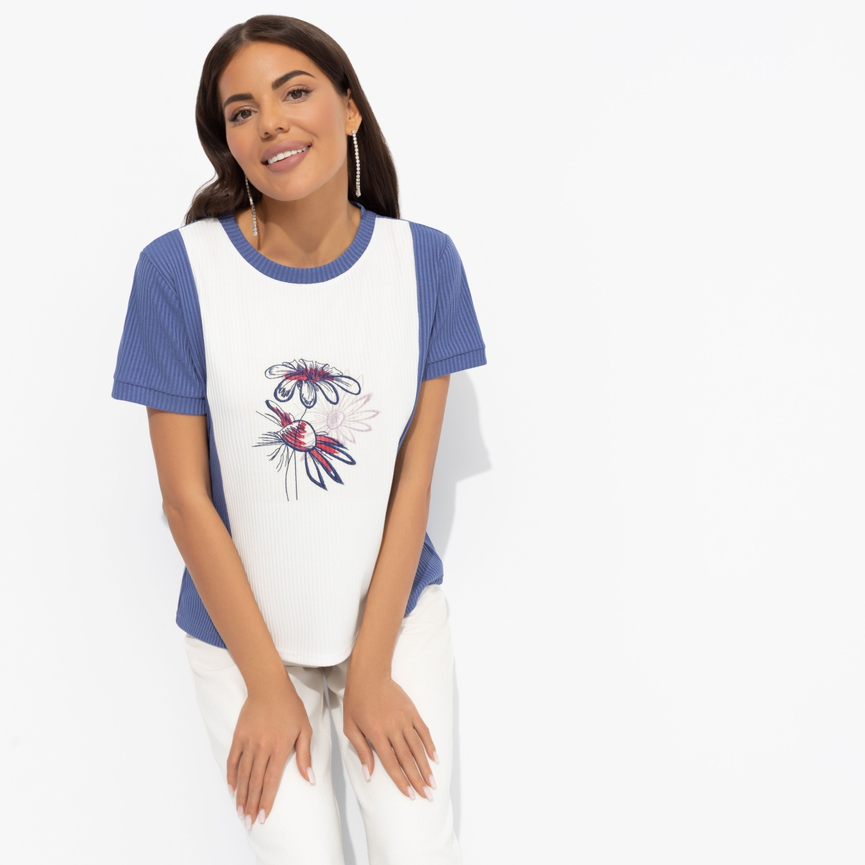Вечеринка с друзьями – ваш любимый способ провести выходной день. Накрыть на стол, придумать, чем удивить гостей, выбрать салфетки и составить плейлист. Встречайте гостей в футболке от ЧАРУТТИ. Гармония комфорта и нарядности. Подруга обязательно спросит, откуда вещь. Модель классического кроя. Комбинация двух видов ткани. Материал изделия в рубчик.