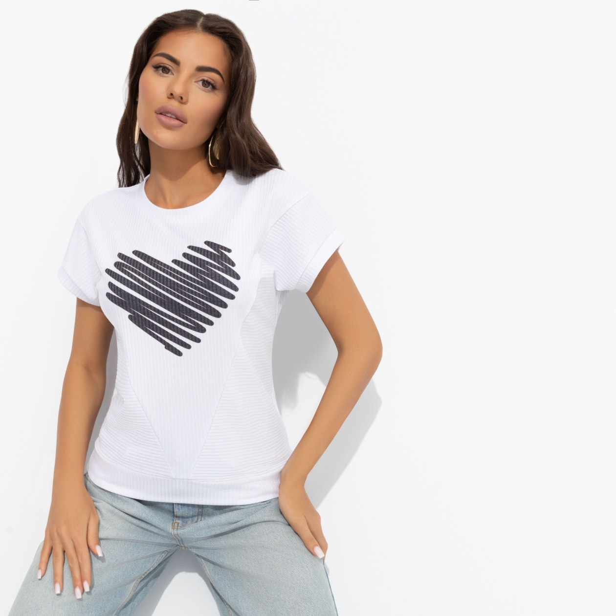 Слышите, как подруга жалуется на дороговизну вещей? Мол, одеваться стильно невозможно, если ты не богачка. Скажите ей: находить стильные и доступные наряды можно с ЧАРУТТИ. Футболка с принтом – база повседневного гардероба. Пусть она начнет с нее. Классический крой, слегка удлиненный фасон. Принт напечатан на ткани. Акцентные швы изделия. Материал в рубчик.