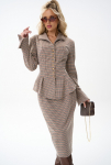 Жилет можно носить как самостоятельный элемент — с брюками или юбкой с высокой талией, так и в комплекте с пиджаком и брюк «Клио»  для создания эффектного костюмного ансамбля.