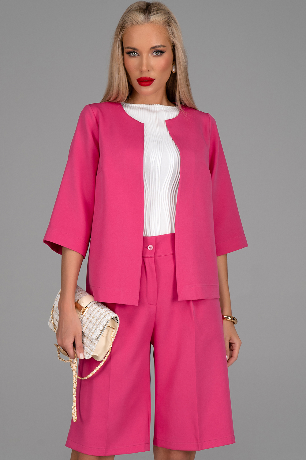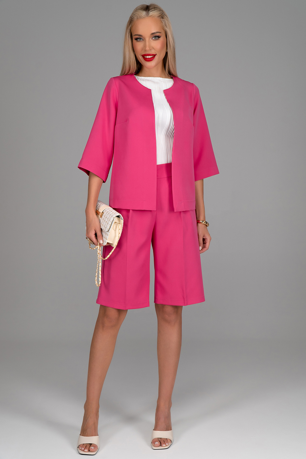 Шикарный универсальный  костюм с бермудами. Этот премиум комплект подчеркнет ваш стиль и обеспечит максимальный комфорт. Ткань почти не мнется, имеет дорогой внешний вид и приятную фактуру. Каждый элемент костюма может носиться отдельно в сочетании с другими элементами гардероба, создавая утонченные и модные образы.