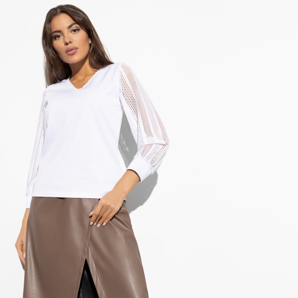 Эта блуза идеально подходит для тех, кто ценит не только внешний вид, но и комфорт. Её легко комбинировать с брюками, юбками и даже джинсами, что делает её универсальной вещью в гардеробе. Высокое качество трикотажа и гипюра стрейч гарантирует долговечность изделия, а эластичные вставки обеспечивают идеальную посадку на любой фигуре. Оптовая покупка этой блузы — это разумное вложение в ваш бизнес, которое принесёт вам стабильный доход и благодарных клиентов.