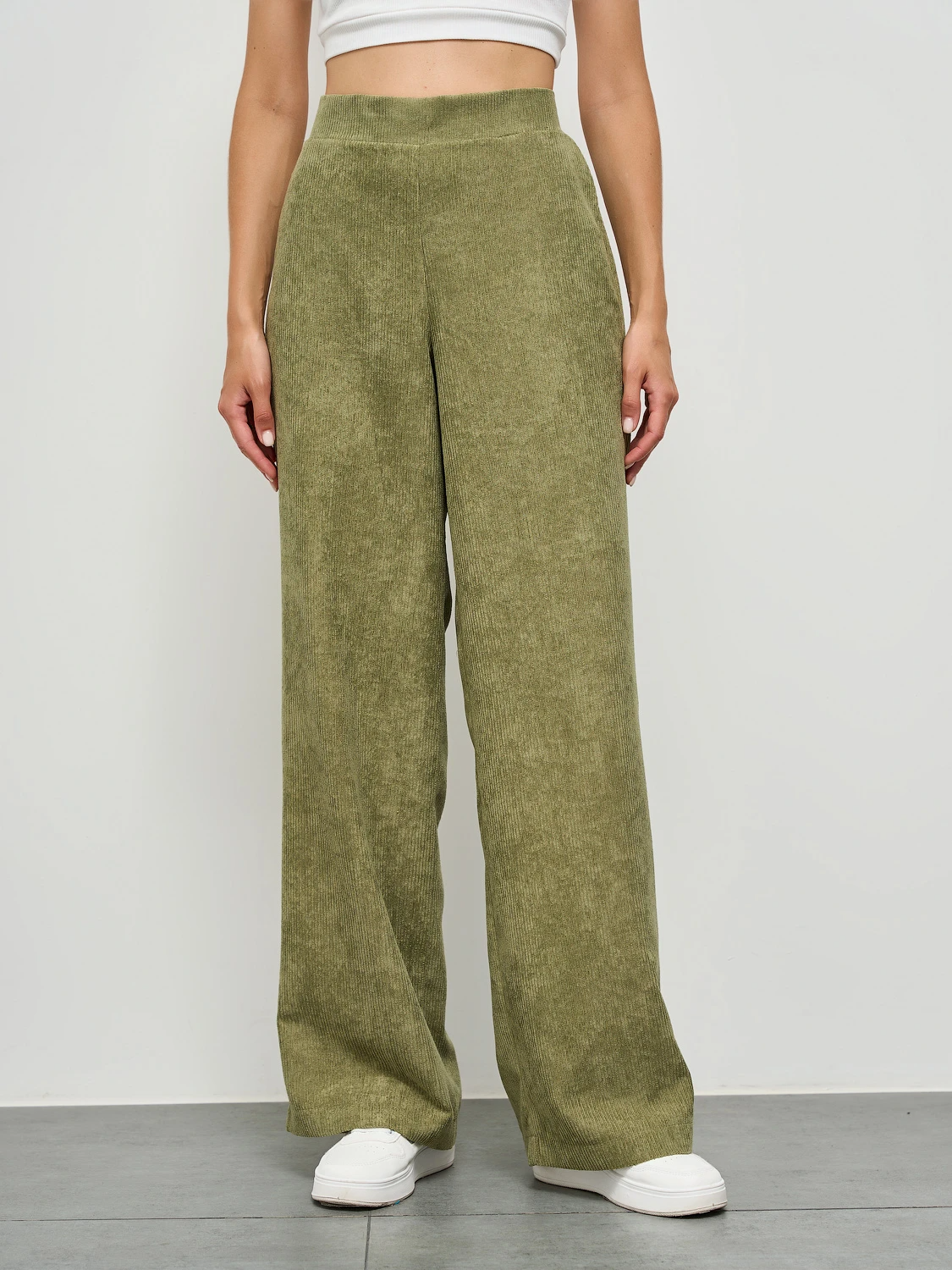 Прямые брюки  с карманами. Сзади пояс на резинке.