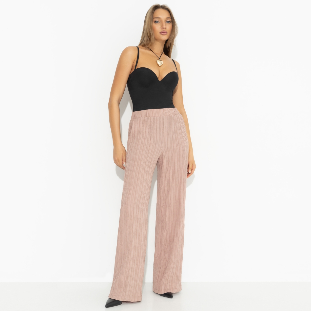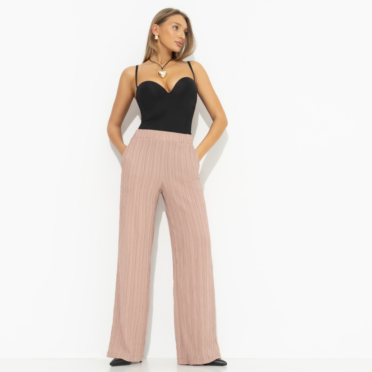 «Пленительная легкость» — это брюки из жатой ткани, которые станут настоящей находкой для тех, кто ценит комфорт и стиль в повседневной жизни. Эти брюки женские — воплощение универсальности и элегантности, идеально подходящие как для деловых встреч, так и для дружеских посиделок. Идеально сидящие на талии благодаря скрытой резинке, они обеспечивают максимальный комфорт в течение всего дня. Высокая посадка и прямой крой делают их подходящими для женщин любых размеров. Позвольте себе чувствовать себя уверенно и стильно в этих изысканных брюках, которые станут вашей визитной карточкой в мире моды.