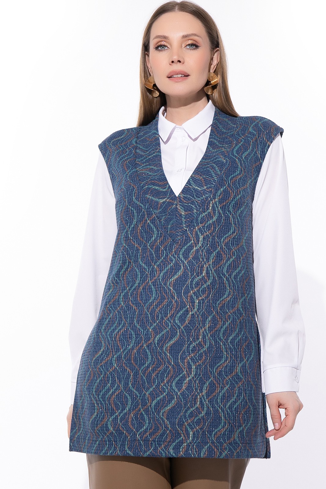 Супер модный удлиненный жилет свободного силуэта. Вырез горловины V-образный. По бокам разрезы. Жилет тлично подойдет для прогулок в прохладное время года, а так же для утепления , Вы можете надеть его в холод под куртку.