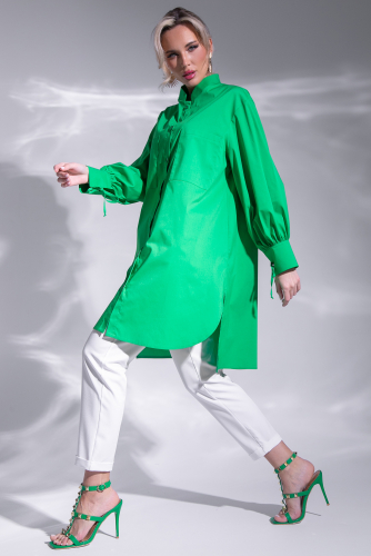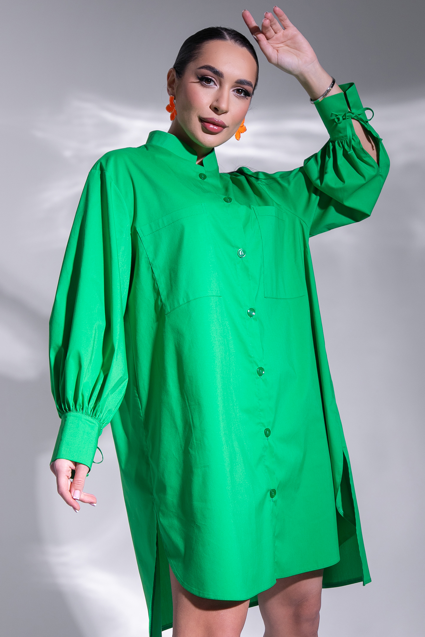 Представляем Вам платье – рубашку в стиле “оверсайз” из хлопка – идеальный выбор для женщин, ценящих комфорт и стиль. Это платье сочетает в себе элементы классической длинной рубашки с трендовым свободным кроем. Пышные рукава и манжеты на завязках придают образу непринужденность и современность. На груди расположен накладной карман, который не только служит практичным элементом, но и добавляет акцент в дизайне.