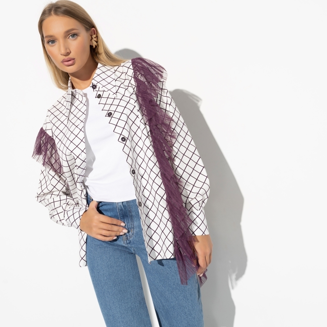 Стать той, которая идеально вписывается в любые обстоятельства. Будь то бранч с подругами или выступление на аудиторию в тысячу человек. Вау-эффект гарантирован в рубашке CHARUTTI в крупную клетку и декором в тон. Рубашка свободного кроя с декором из сетки. Спинка чуть удлинена. Рубашка хорошо смотрится и как самостоятельный предмет гардероба, и как второй слой.