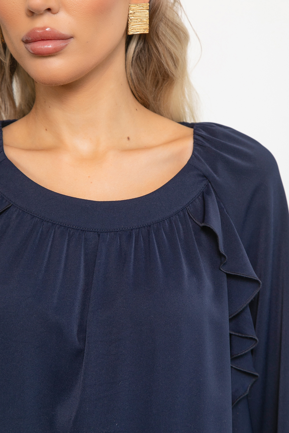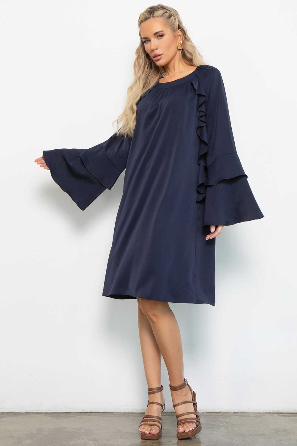 Романтичный образ в стиле “бохо” от бренда ELZA – женственное шёлковое платье элегантной длины ниже колена. Рукава и декоративные рюши добавляют текстуры и игривости, делая ваш образ воздушным и романтичным.