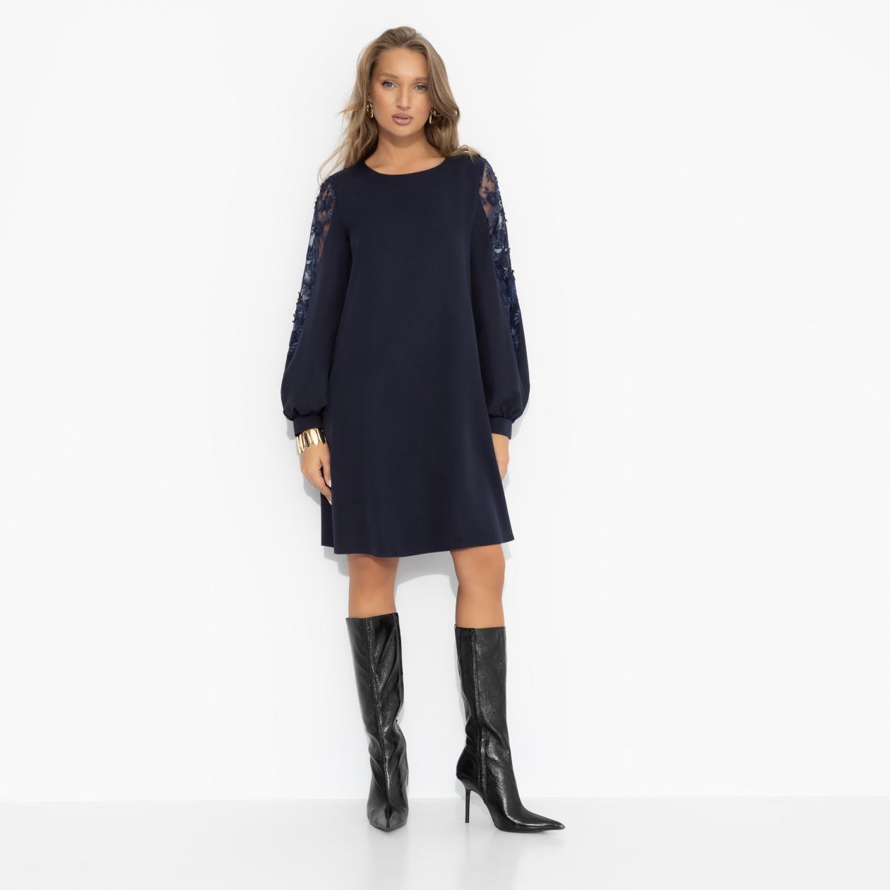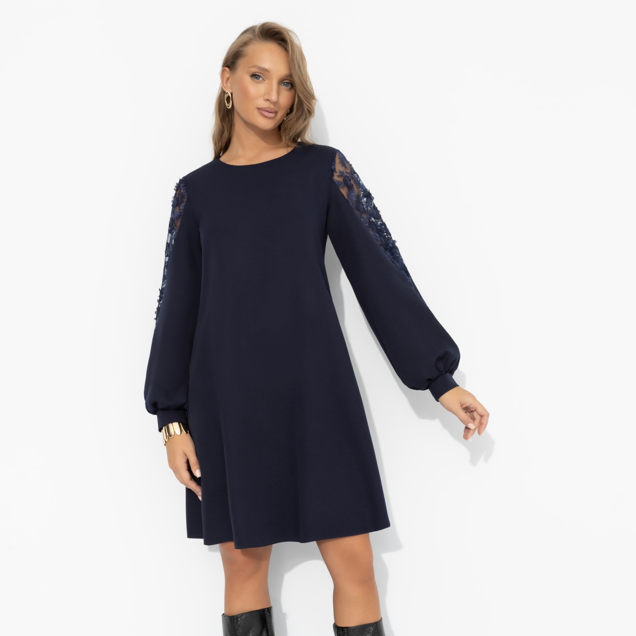 • АртикулПлатье с ажурными рукавами, Секрет любви (синее)