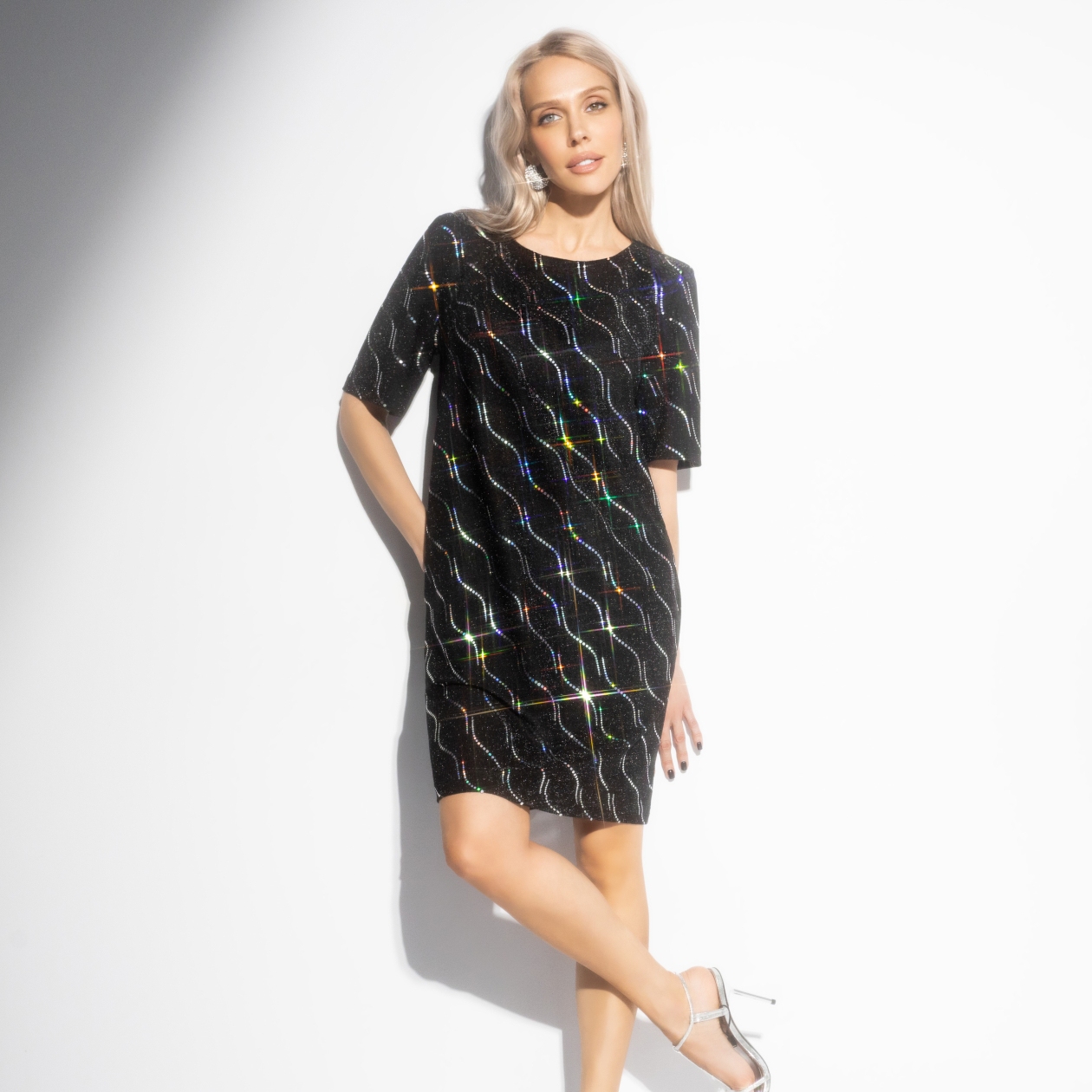Говорят, нити судьбы могут сплестись в самые красивые узоры, если позволить себе поверить в лучшее. В этом платье ЧАРУТТИ каждая блестящая линия ‒ знак того, что всё сложится так, как нужно тебе. Просто сделай шаг навстречу мечте, ведь Вселенная уже всё устроила! Платье свободного кроя с карманами и акцентным нарядным декором. Сияющий блеск на глубоком чёрном фоне. А ты готова впустить чудо в свои дни?