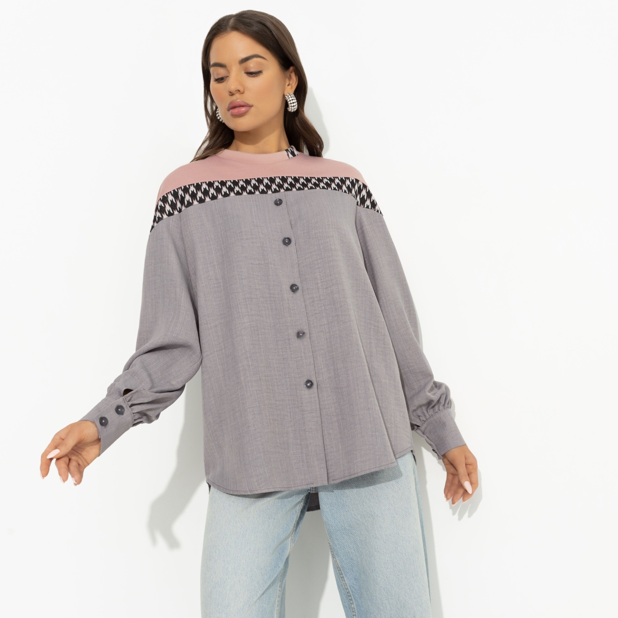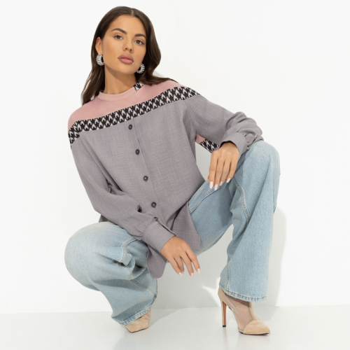 Свитшот, который не выходит из головы. Бомбическое сочетание цветов и замысловатая дизайнерская игра в объединении свитшота и рубашки. Внимание! Свитшот может вам присниться. Свитшот свлбожного силуэта. Имитация комбинации свитшота и рубашки. Изделие с пуговицами. Свитшот хорошо смотрится в заправленном виде и навыпуск.