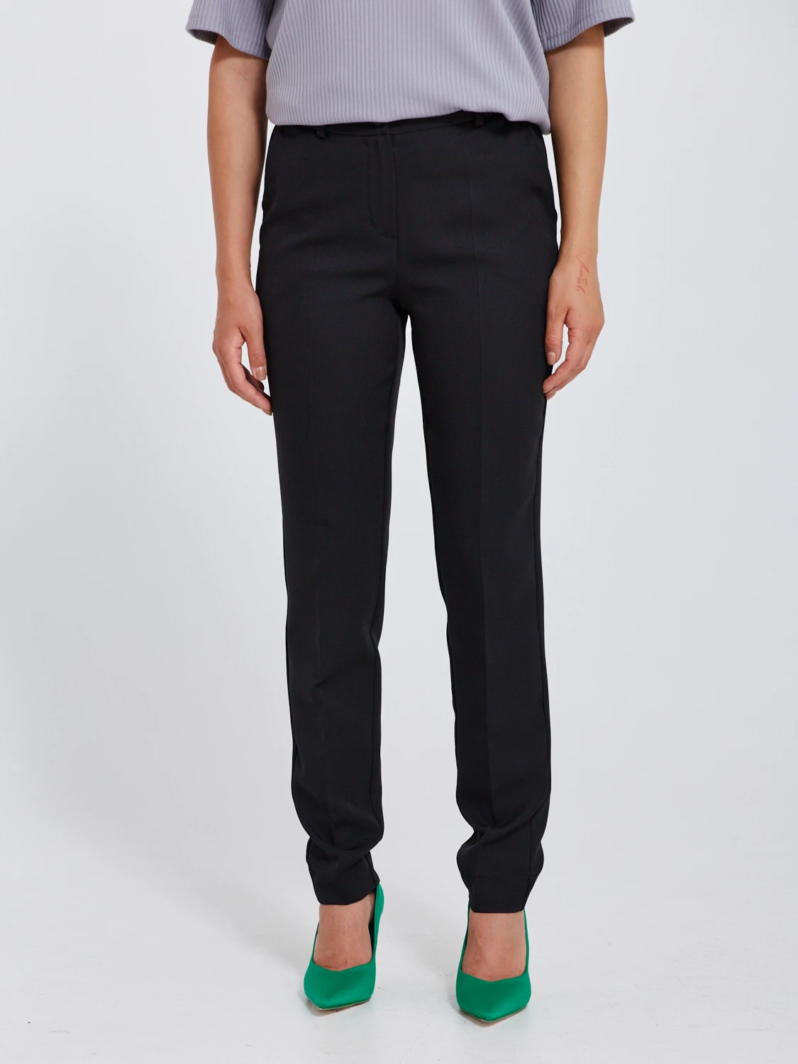 Брюки плотно прилегающие по бедрам и зауженные к низу.