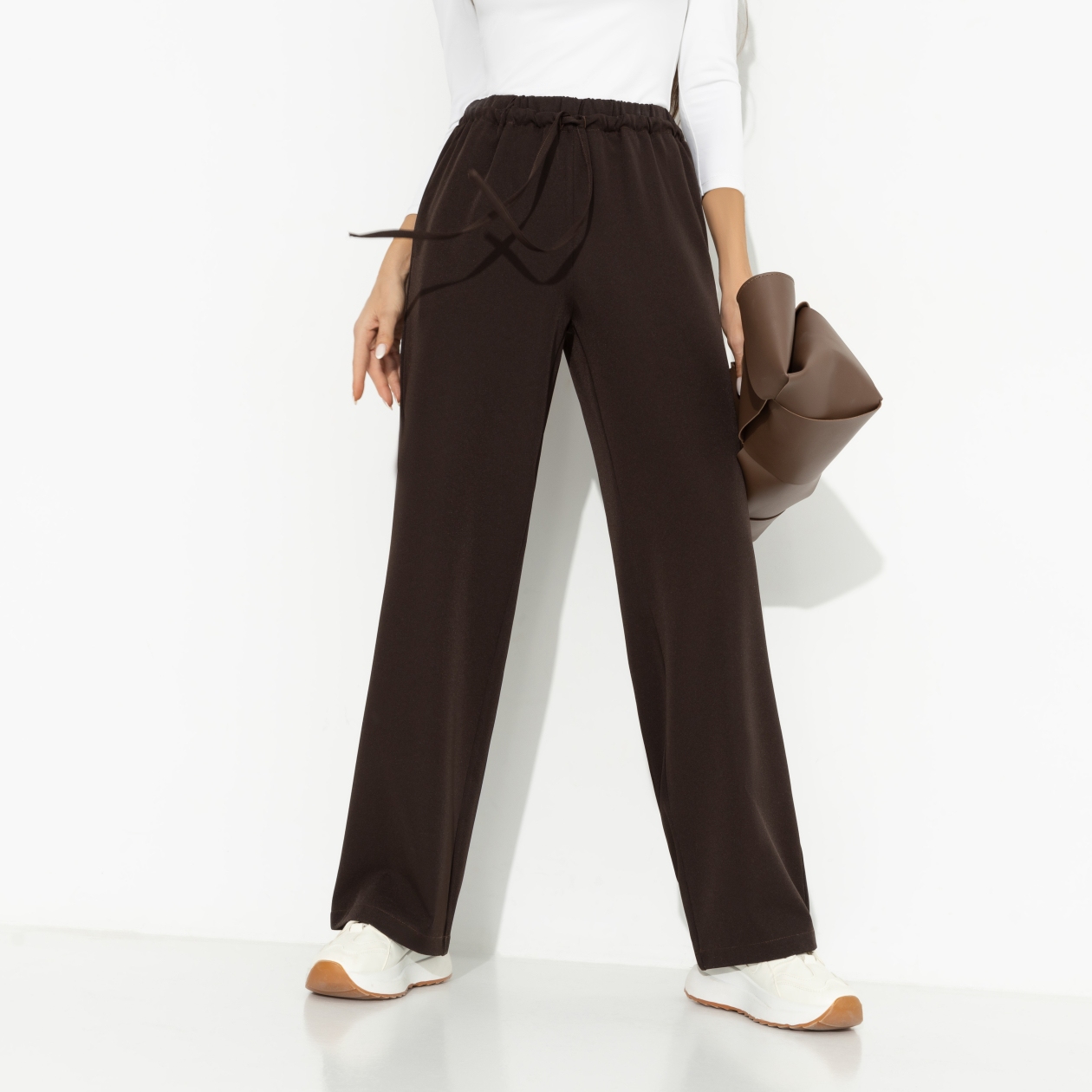 Брюки на резинке «Оглушительный успех (brown)» — это идеальное решение для тех, кто ценит комфорт и стиль. Изготовленные из костюмной ткани, они подойдут для любого времени года и события. Благодаря эластичному поясу с завязками в тон, брюки идеально удерживаются на талии, не сковывая движений и обеспечивая свободу и легкость. Они станут незаменимым элементом гардероба для тех, кто предпочитает брюки женские классические, но в то же время хочет добавить немного современности и удобства в свой образ. Эти брюки прекрасно сочетаются с любыми топами и обувью, от спортивной до классической.