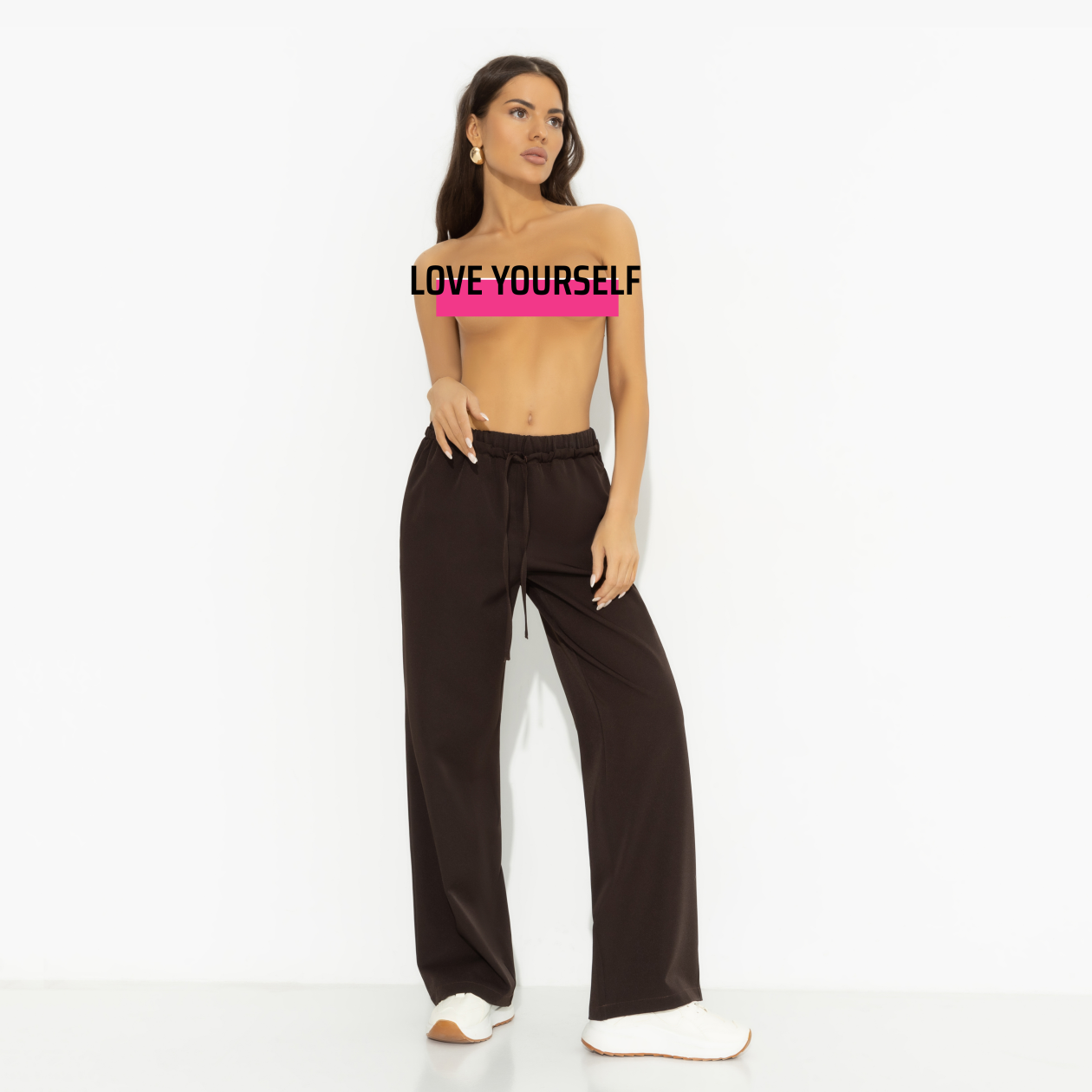 Он в шутку предложил тебе снять для твоих вещей отдельную квартиру, а ты юмора не поняла и согласилась! А пока он вникал в ситуацию, ты уже заказала брюки CHARUTTI в цвете горького шоколада. Брюки прямого кроя. Пояс на резинке дополнен завязками в тон. Есть карманы. Изделие хорошо смотрится на любом типе фигуры.