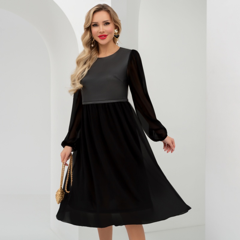 Новые формы трендов в 2025 от Charutti: платье со вставкой из эко-кожи станет хитом и в этом сезоне. Полупрозрачный шифон, силуэт Трапеция для безупречной посадки. Актуальная модель для обновленного гардероба!