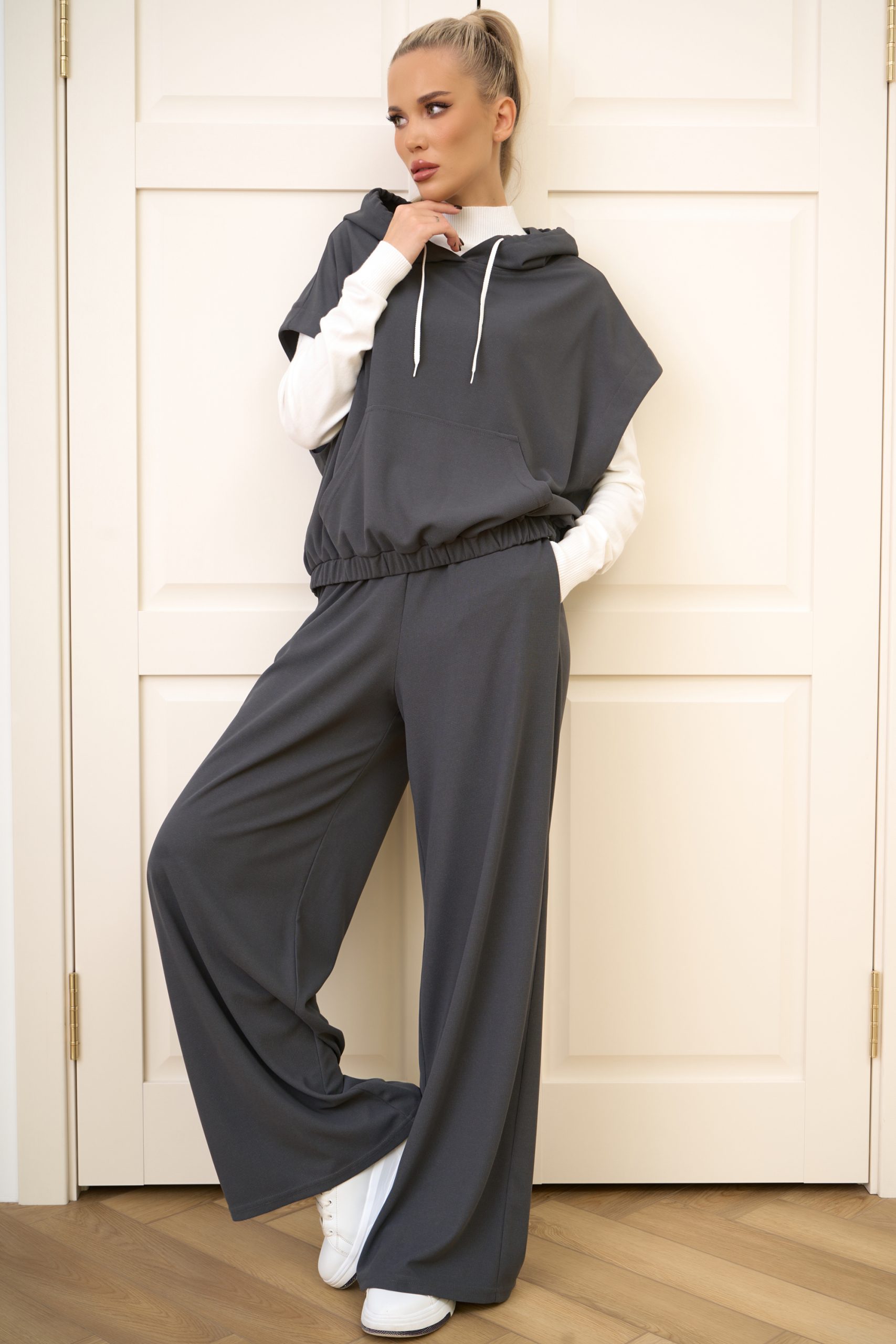 Современный и смелый, костюм «Ингрид» идеально сочетает стиль и комфорт в духе спорт-шика. Он создаёт непринуждённый, но продуманный образ для повседневной носки и активного образа жизни.