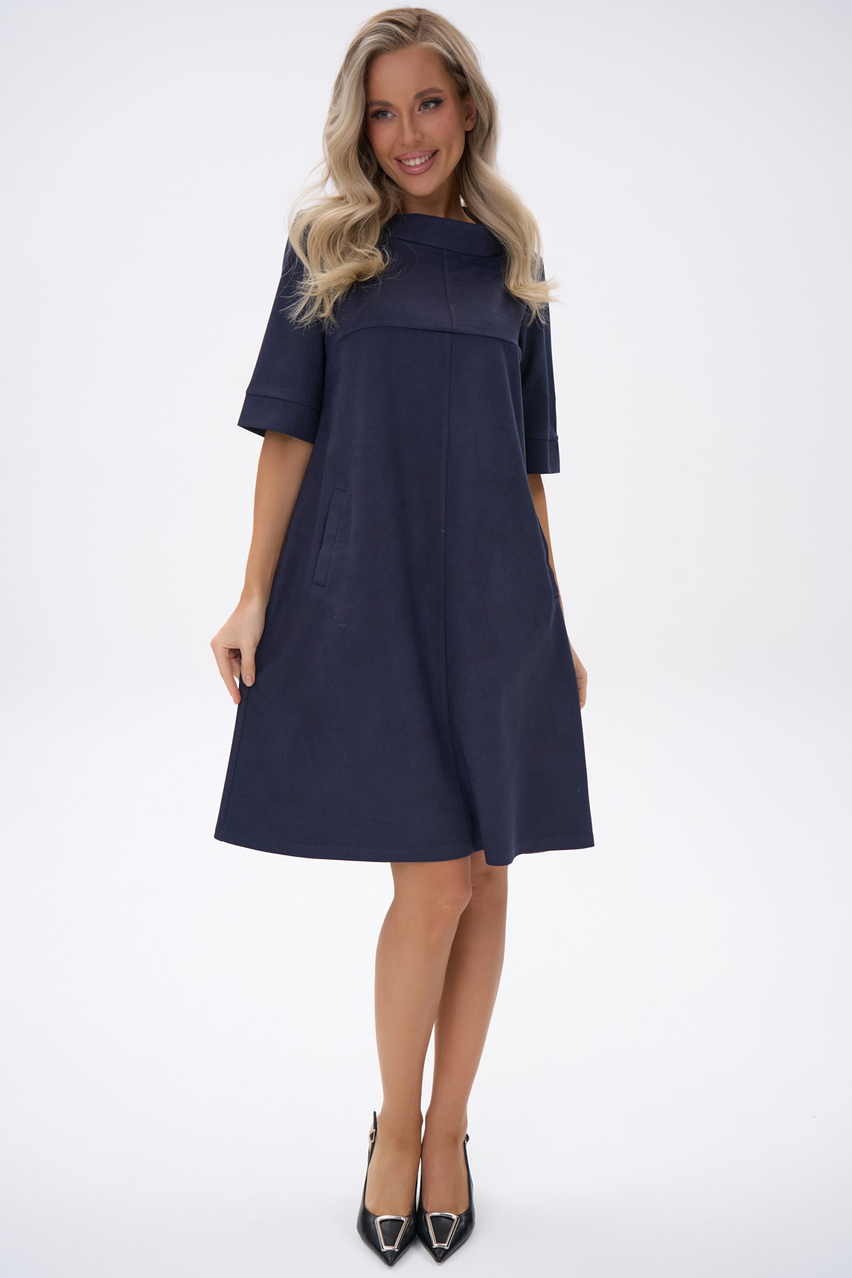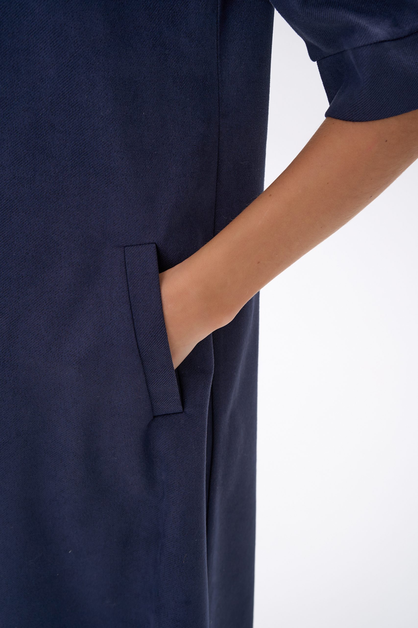 Современное платье для любительниц строгих,но ярких образов. Платье A-силуэта, выполненно из микровельвета. Рукав 3/4 с манжетом. Ворот стойка, функциональные карманы.