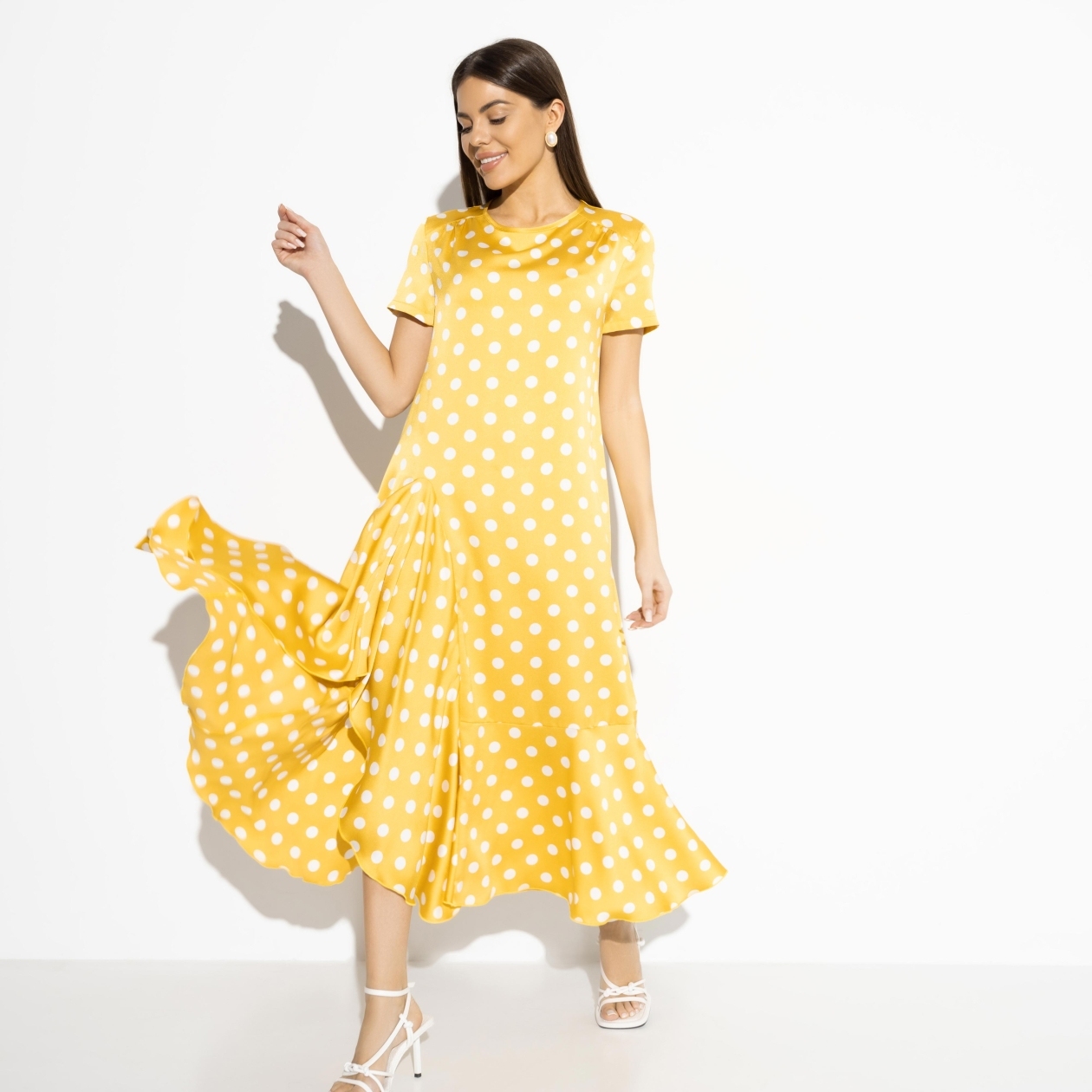 Платье «Модный импульс (smile energy)» — это не просто одежда, это воплощение фантазий и ощущение свободы при каждом шаге. Изготовленное из уникальной плательной ткани «бабл-сатин», оно поражает своими воздушными линиями и нежным шелковистым блеском. Каждый кружок на ткани рассказывает свою историю, заключенную в загадочные предсказания, которые обязательно сбудутся. Оптом приобретая эти фантастические платья, вы обеспечите себя и своих клиентов не только стильным гардеробом, но и волной позитива, которая использует моду как проводник энергии.