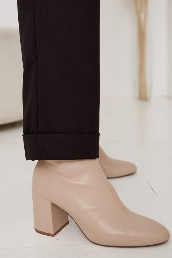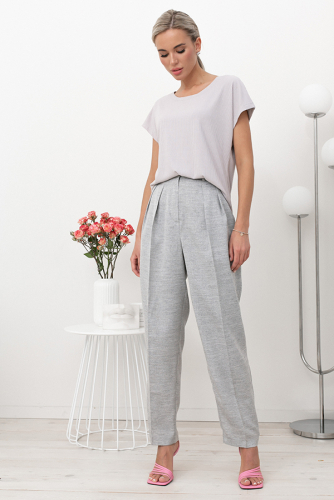 Брюки из костюмной ткани, зауженные книзу с отворотами. В боковых швах выполнены карманы. Притачной пояс. Застёжка на молнию-гульфик и пуговицу. Секрет такой модели кроется в безупречно точной посадке по талии и бедрам – ничего лишнего, только конструктивные детали, которые придают четкость линиям силуэта.