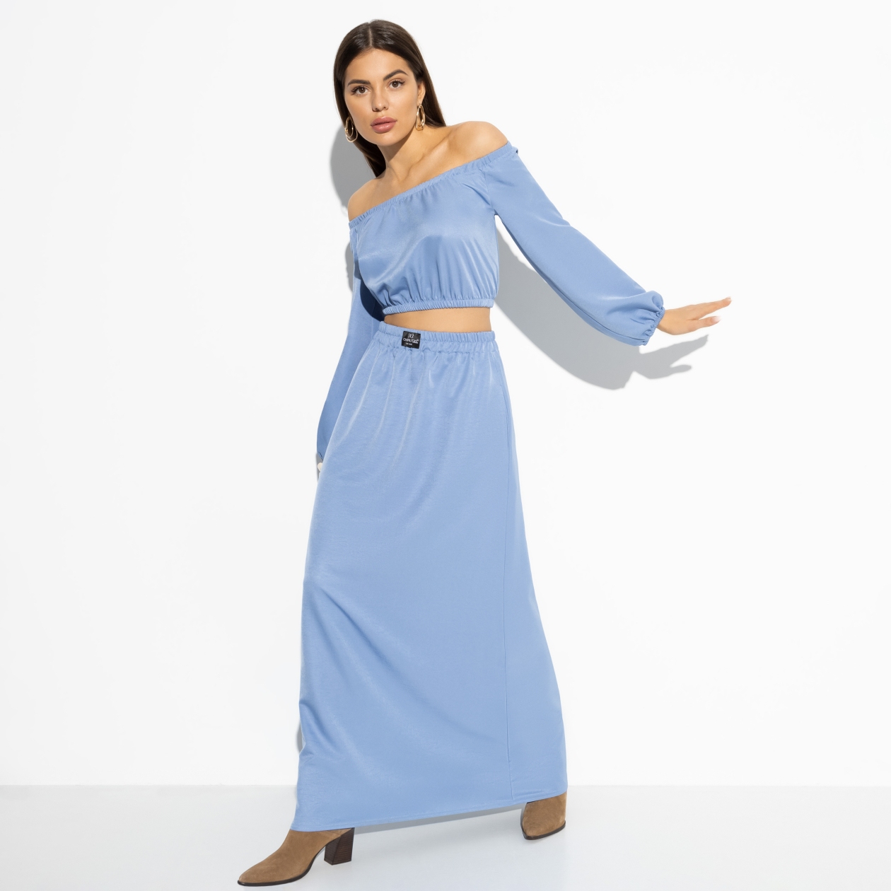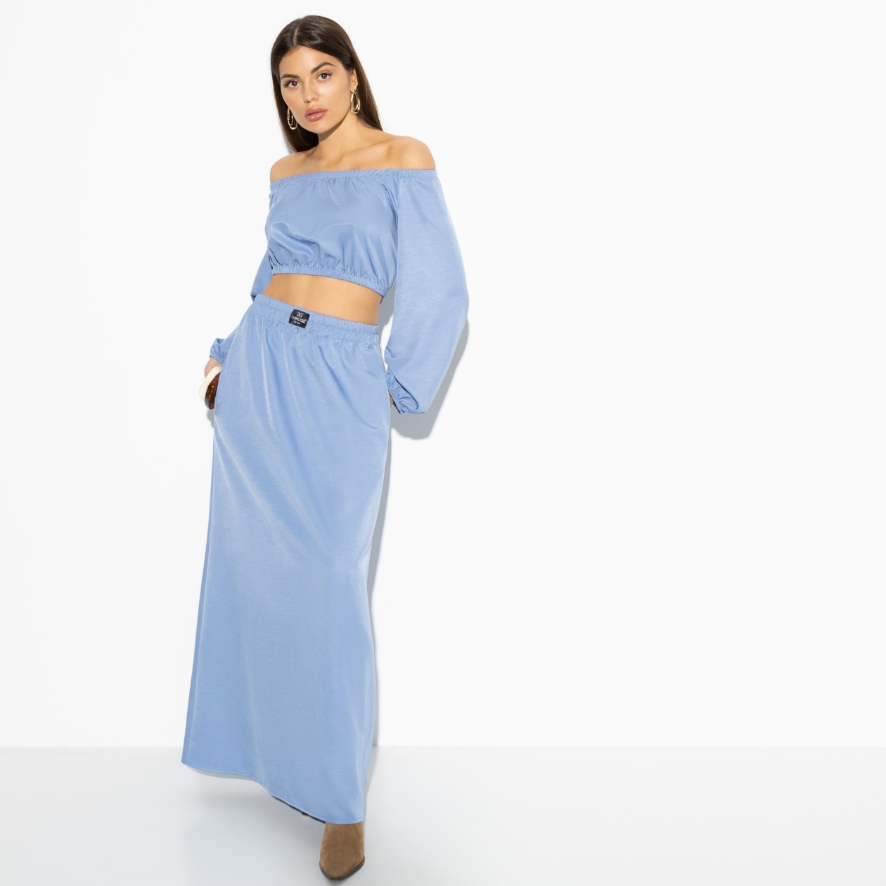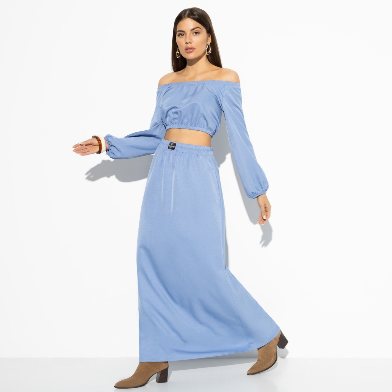 Самый чувственный тренд – открытые плечи. Что может быть более женственным? Этот комплект включает топ, открывающий живот, и юбку в длине макси. Такой образ идеально подходит для тех, кто хочет подчеркнуть свою женственность и уверенность. Оптовая закупка позволит вам предложить этот тренд своим клиентам по привлекательной цене.