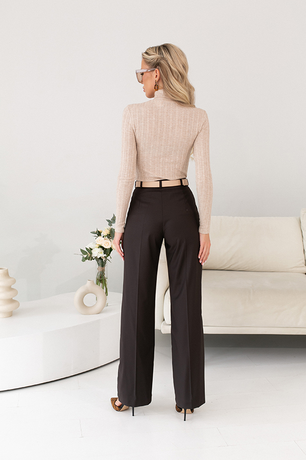 Брюки прямого силуэта из костюмной ткани. Притачной пояс со шлёвками. Застёжка на молнию-гульфик и пуговицу. Секрет такой модели кроется в безупречно точной посадке по талии и бедрам – ничего лишнего, только конструктивные детали, которые придают четкость линиям силуэта.
