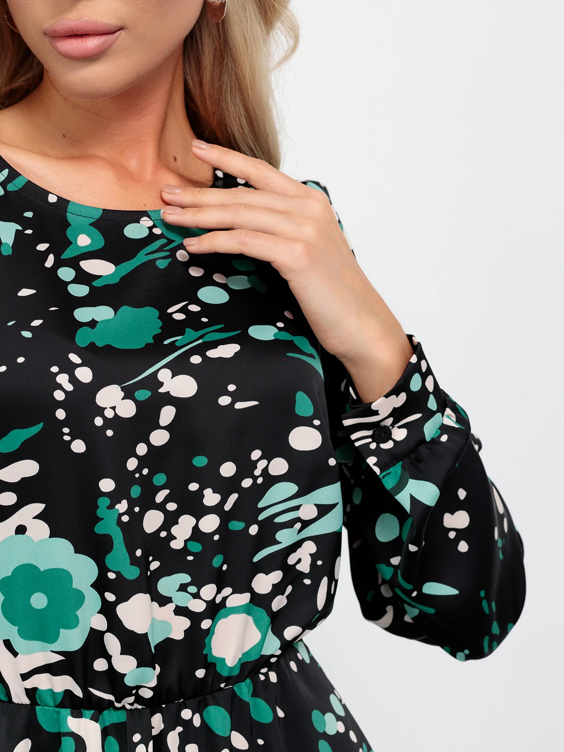 Длинный рукав на узкой манжете с пуговицей.