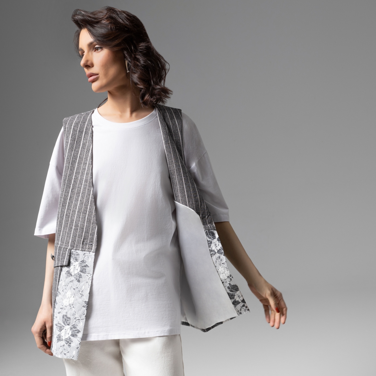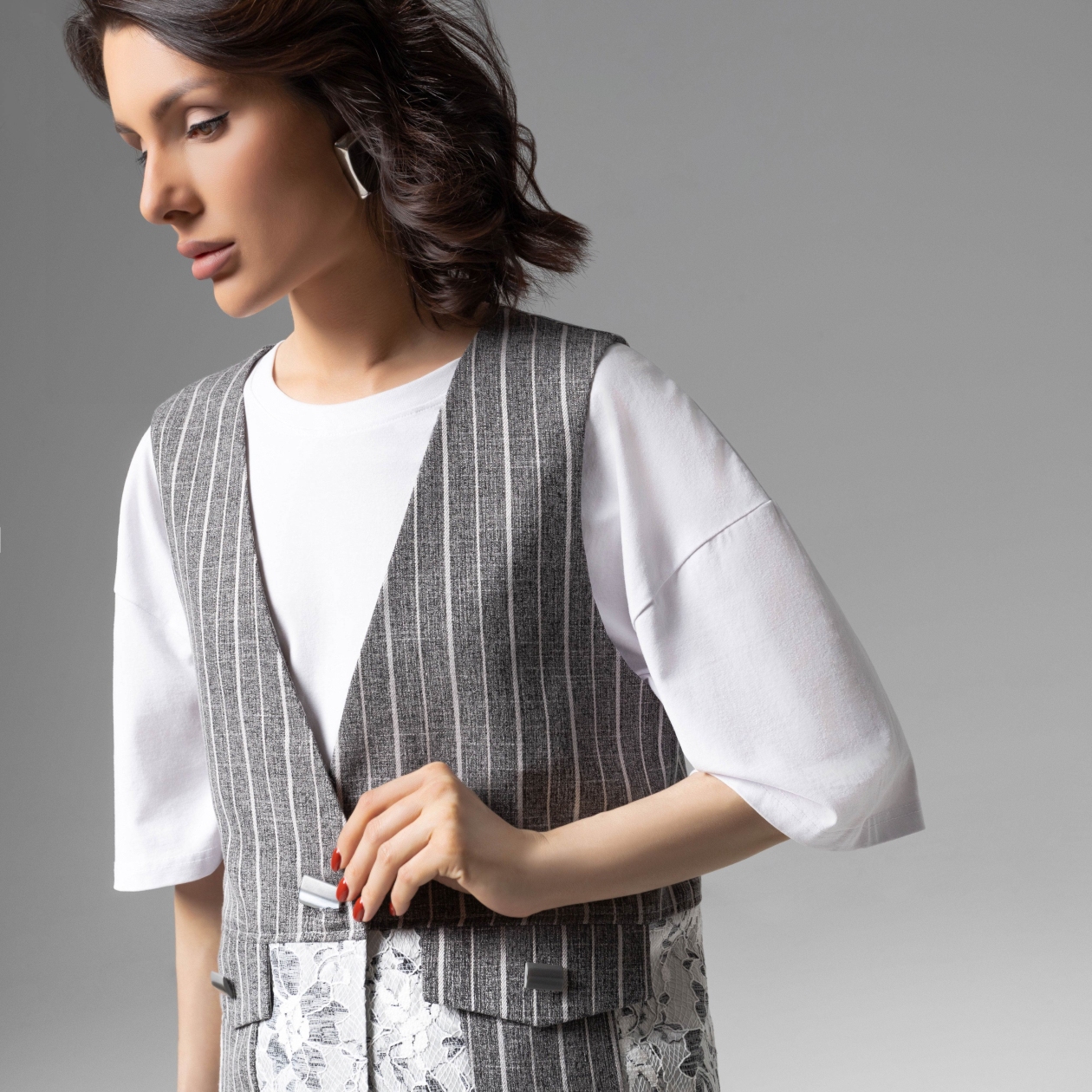 • АртикулЖилет комбинированный с кружевом, Искусство переговоров (grey)