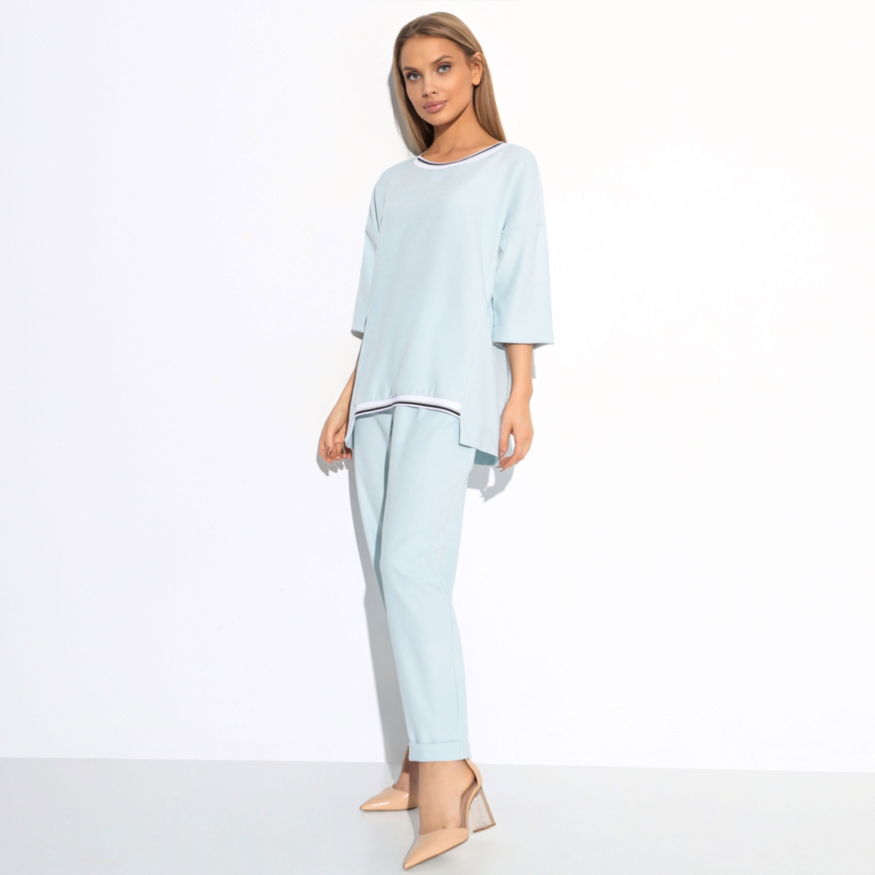Брючный комплект «Новая эра» — это воплощение современного стиля и комфорта. Свободный крой костюма подчеркивает женственность и позволяет чувствовать себя уверенно в любой ситуации. Идеальный баланс между полиэстером и вискозой обеспечивает долговечность и мягкость ткани, а добавление спандекса придаёт дополнительную эластичность, что особенно важно для активного повседневного использования. Такой комплект станет незаменимым элементом гардероба для тех, кто ценит комфорт и стиль.